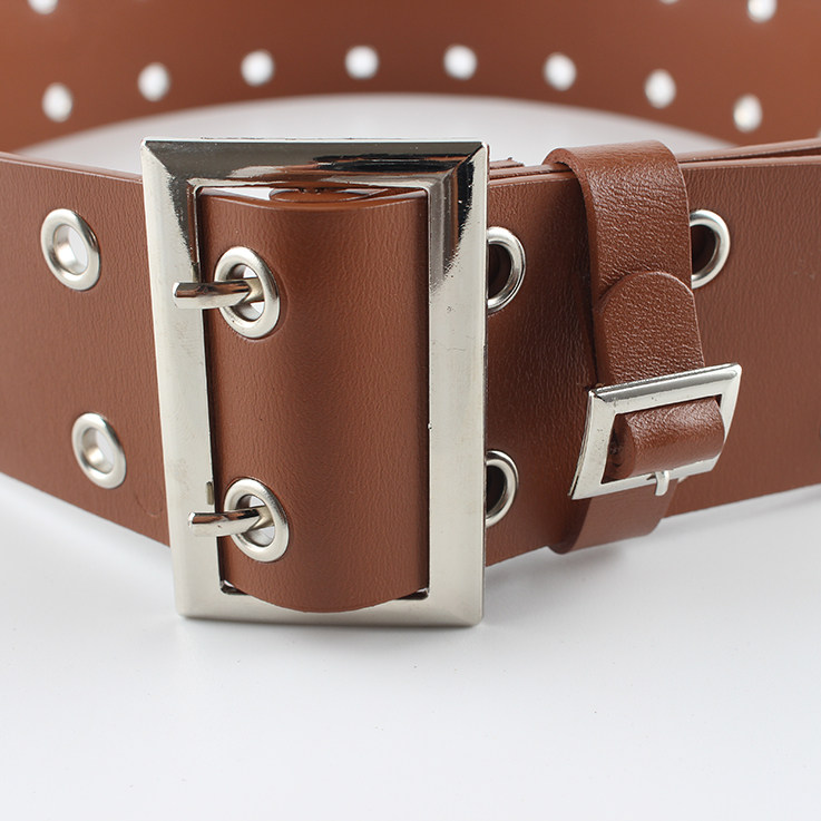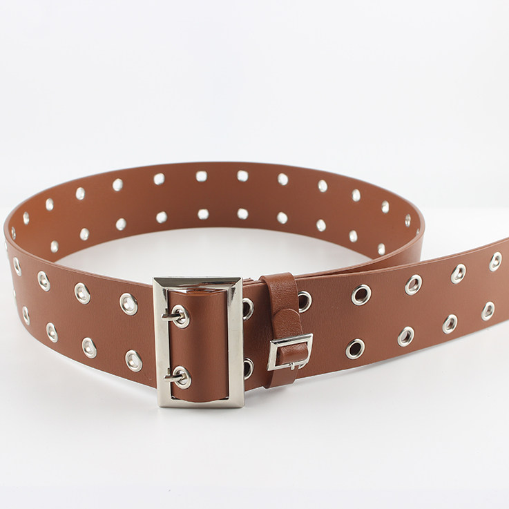 男女皮带头层牛皮明星同款双排扣眼朋克风机车百搭牛仔裤真皮腰带