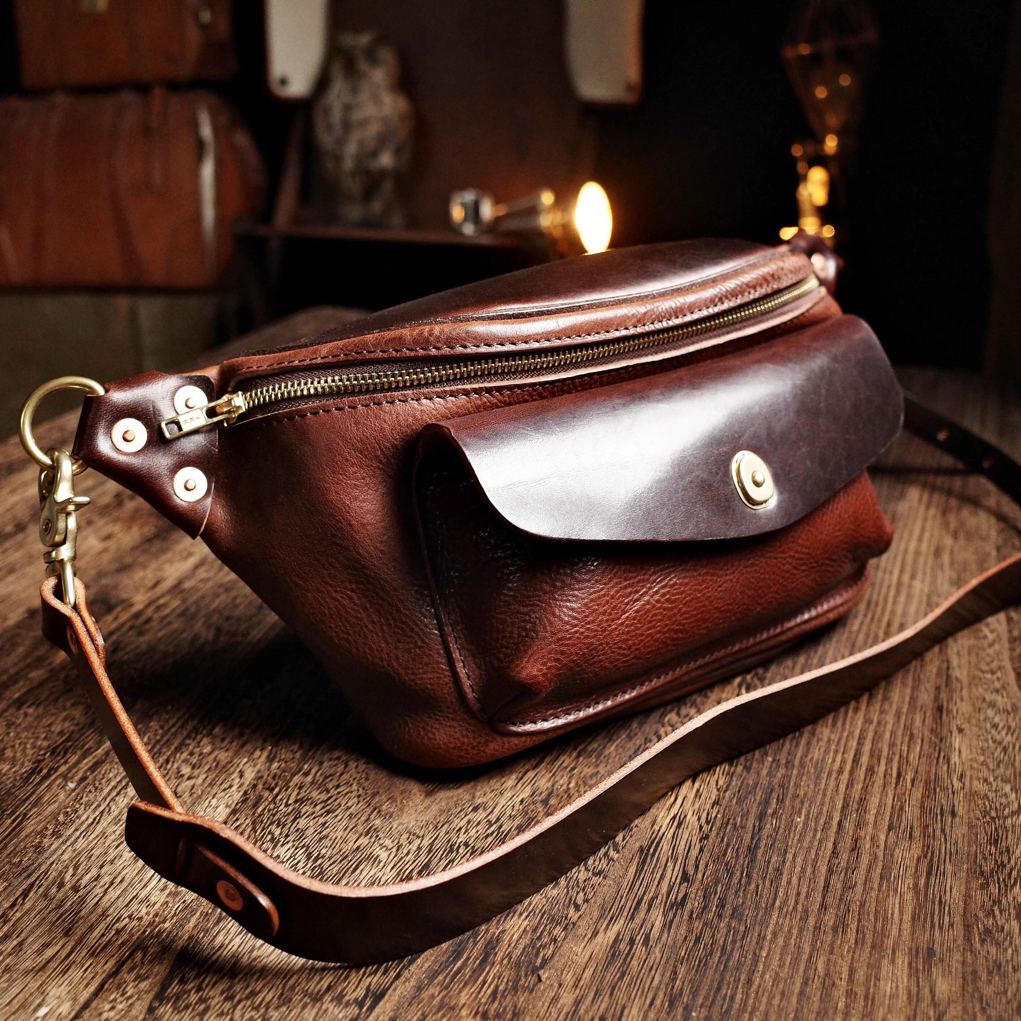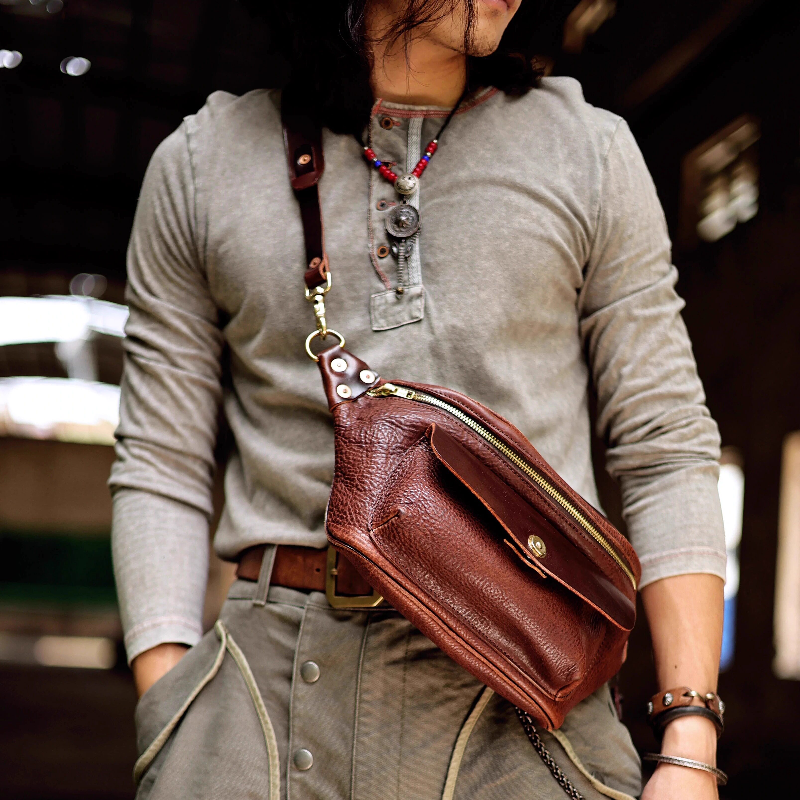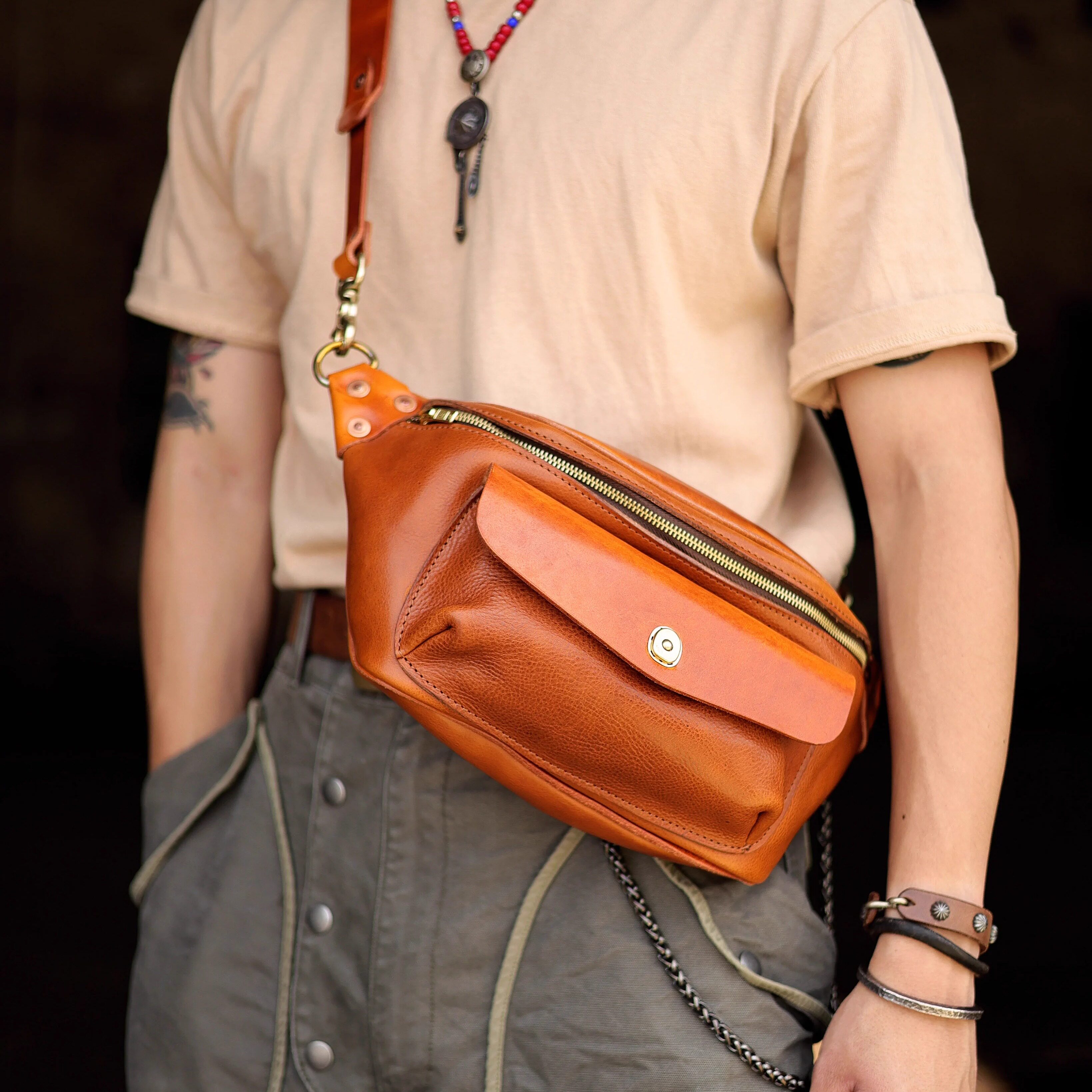 意大利全头层牛皮手工美式复古阿美咔叽骑行户外机车斜挎胸包男女