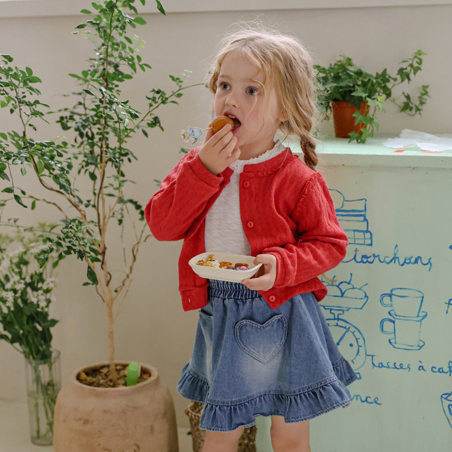 现锦小和和韩国童装儿童毛衣女款2026新款春季薄红色女童针织开衫