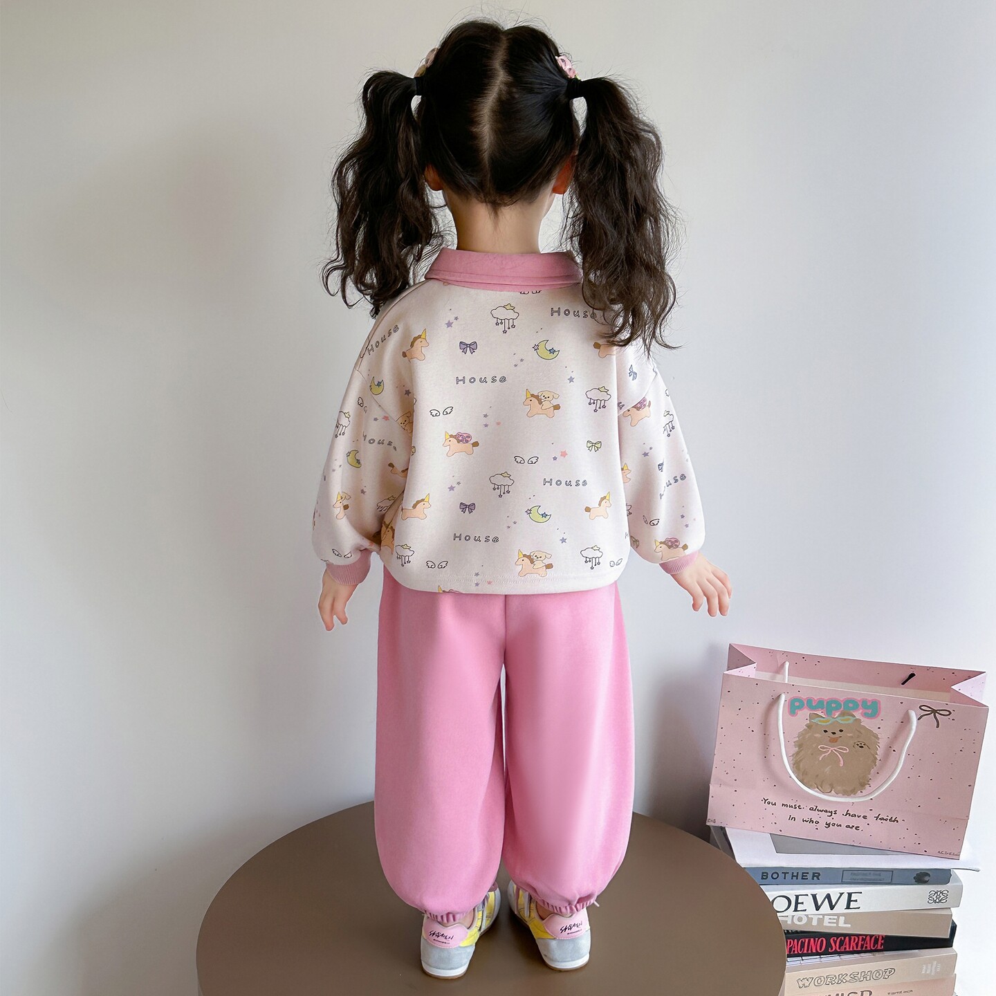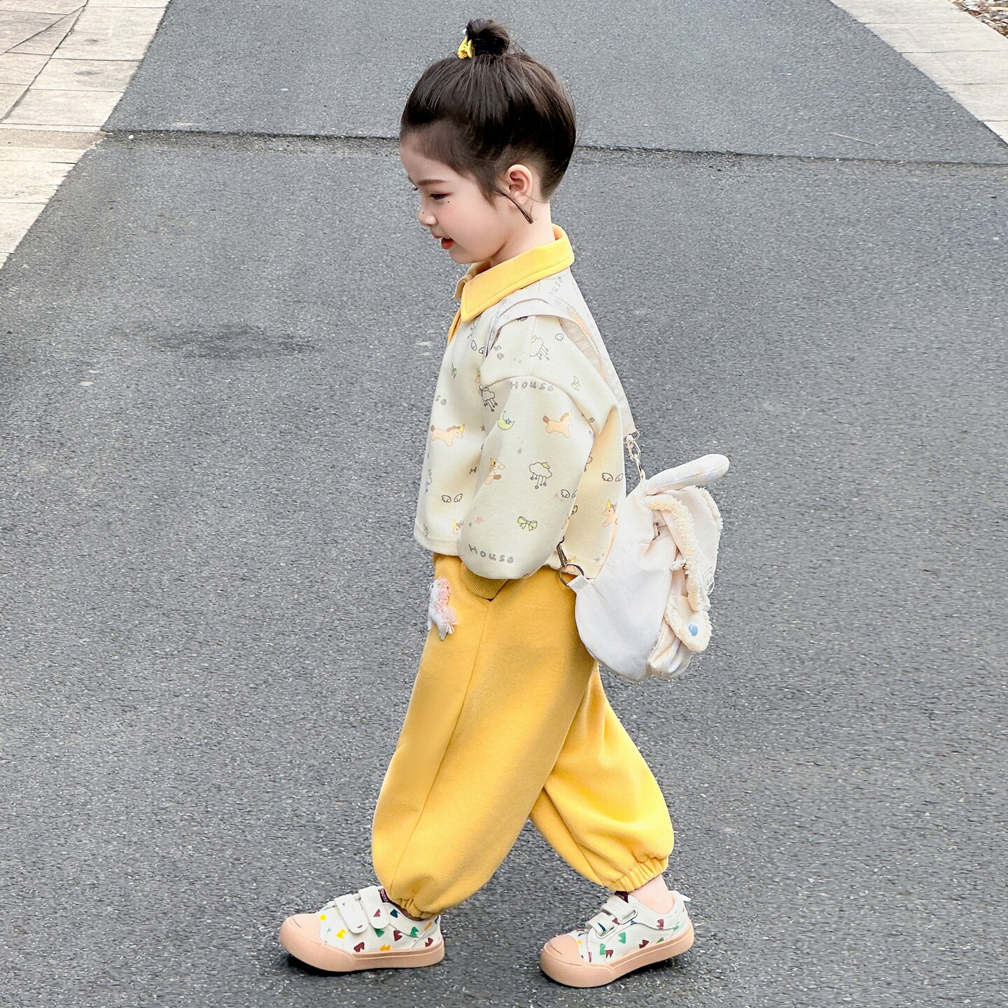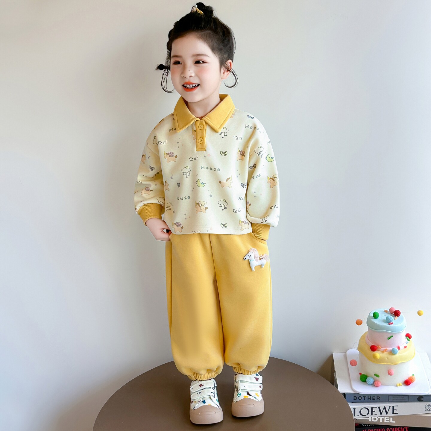女宝宝春装巨好看套装女孩韩版卡通休闲卫衣两件套女童时髦衣服秋
