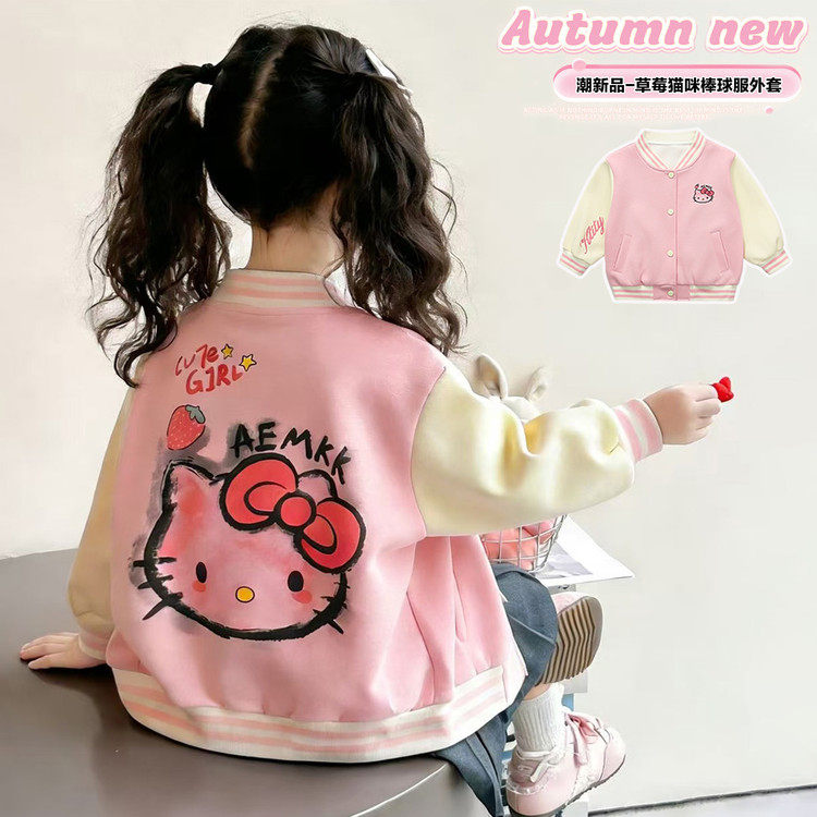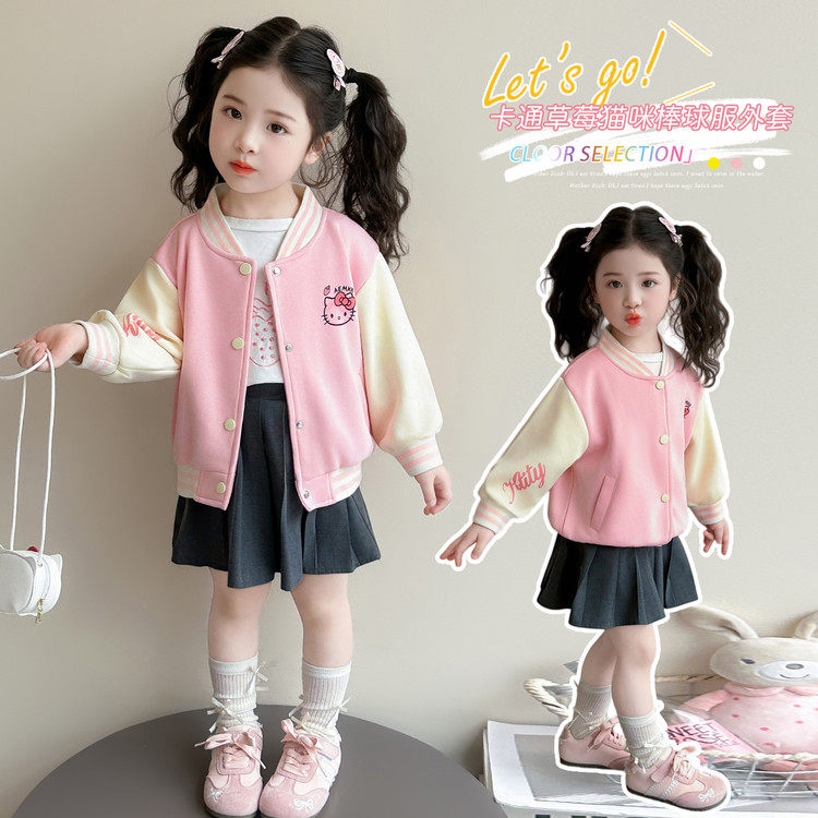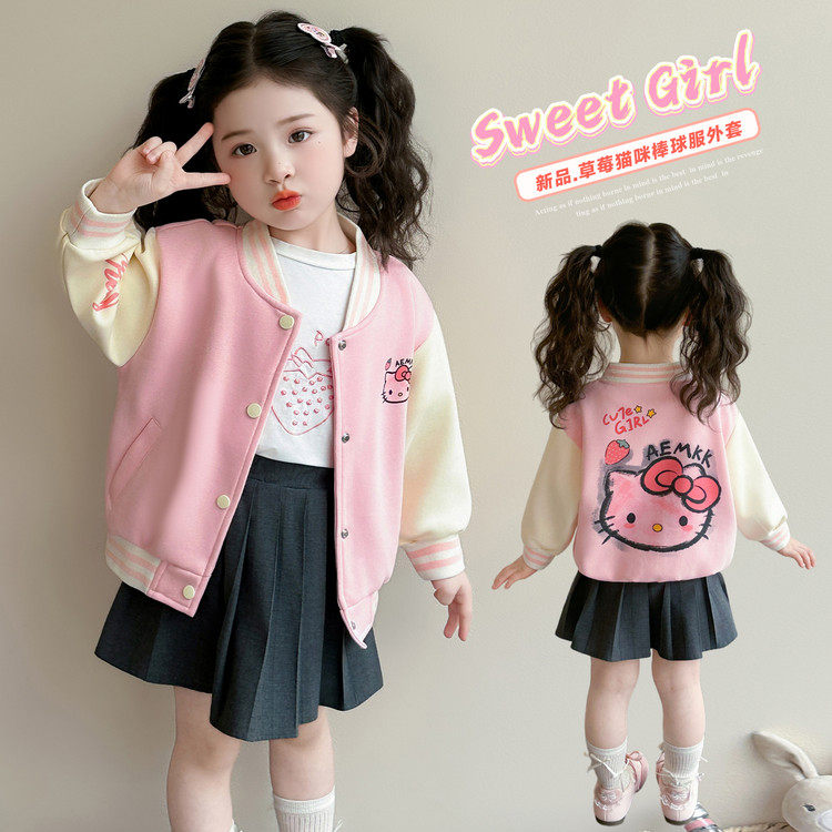 女童春秋款外套2026新款儿童女宝宝春季小女孩猫咪上衣春装棒球服