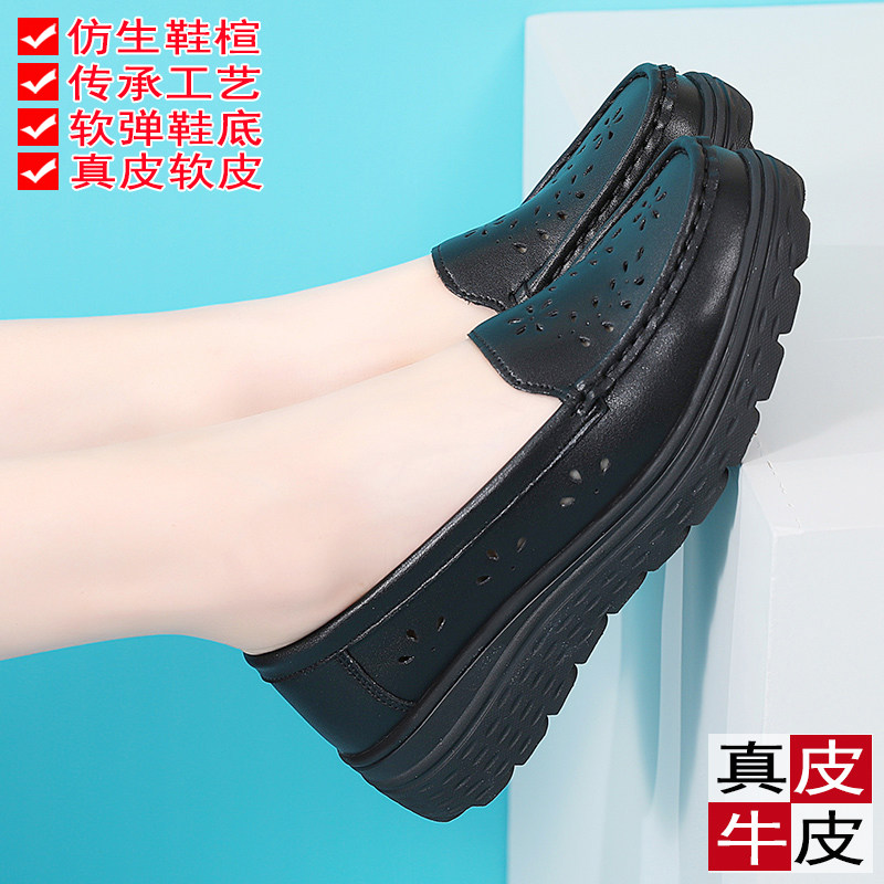真皮黑色鞋子上班不累脚软底透气工作鞋女软底舒适浅口单鞋夏季