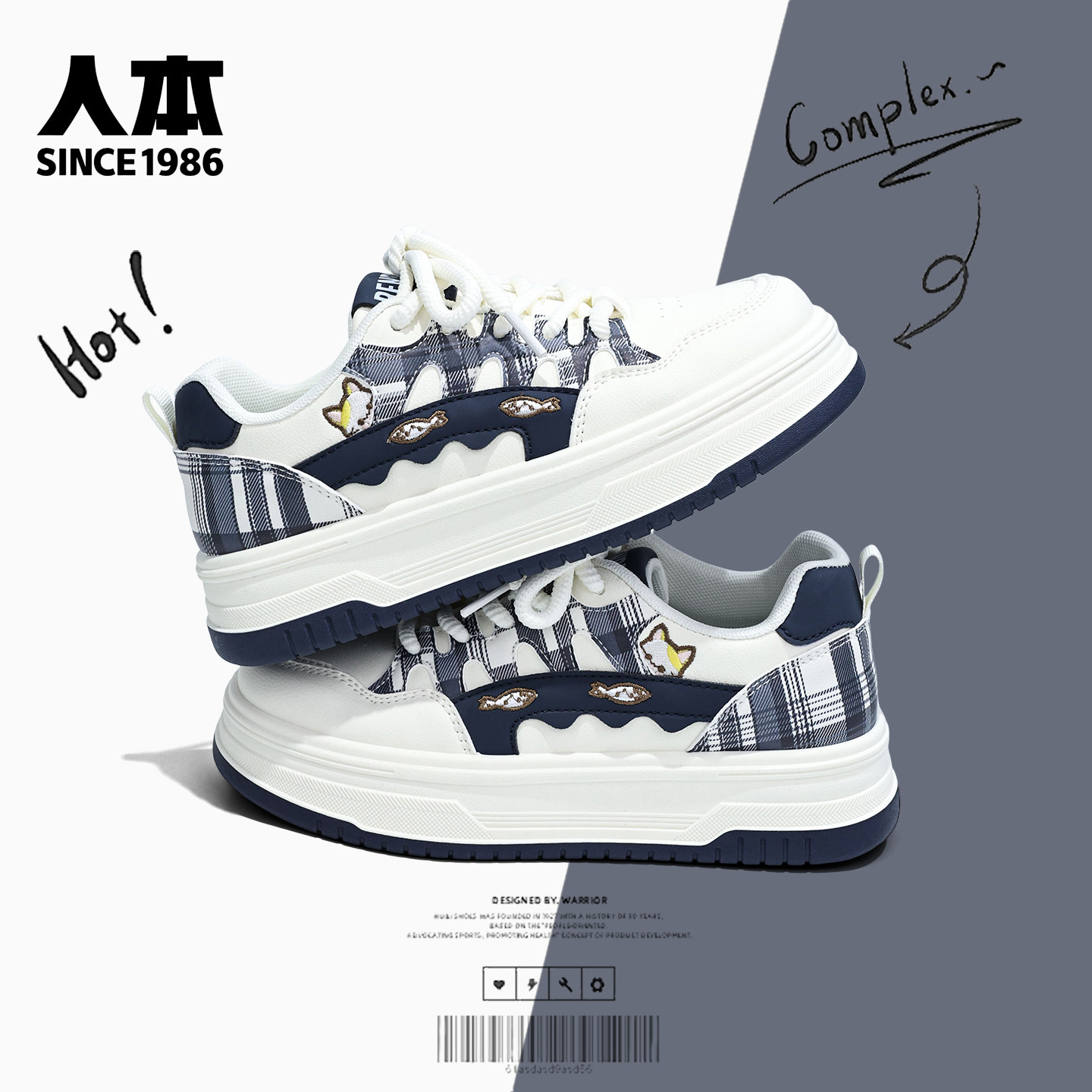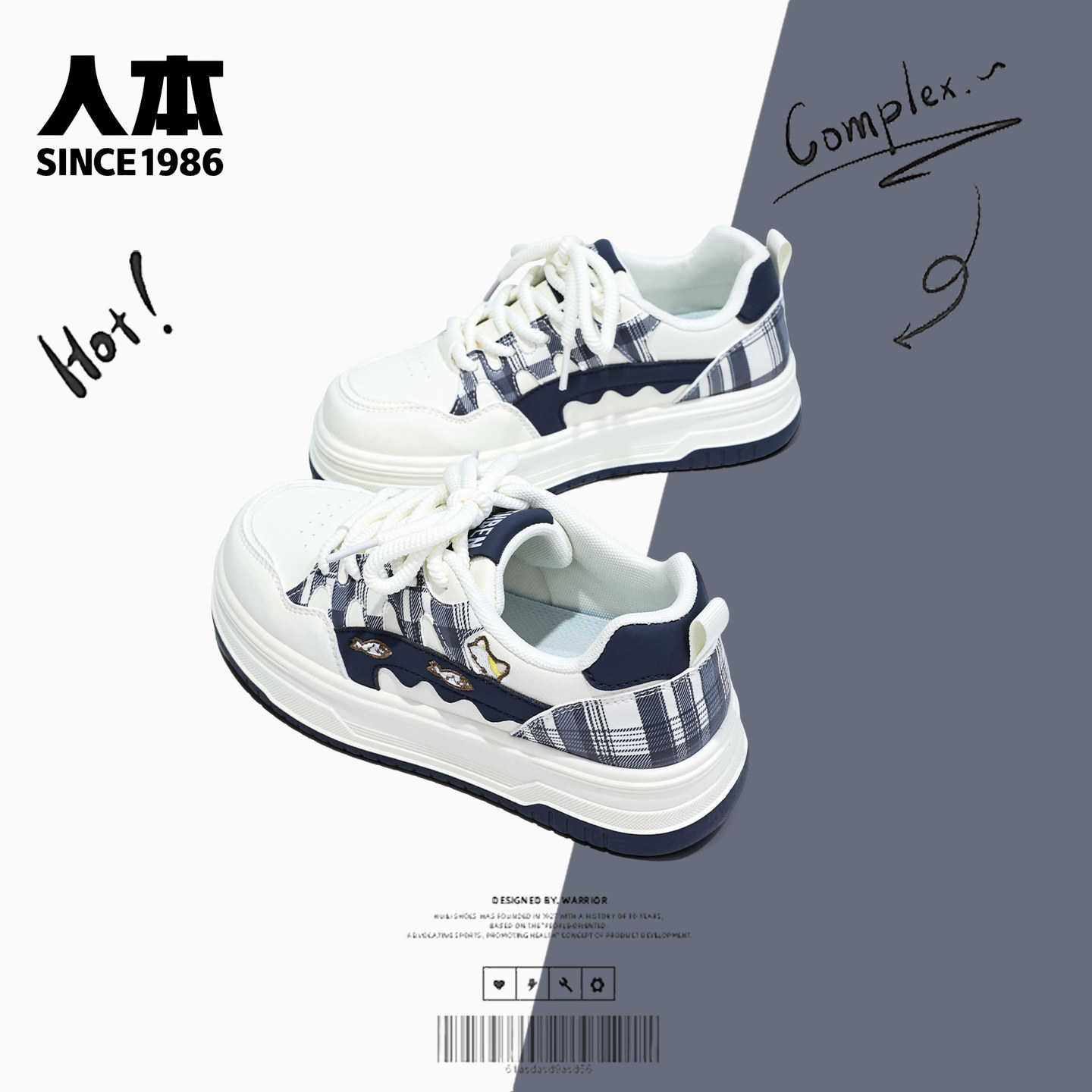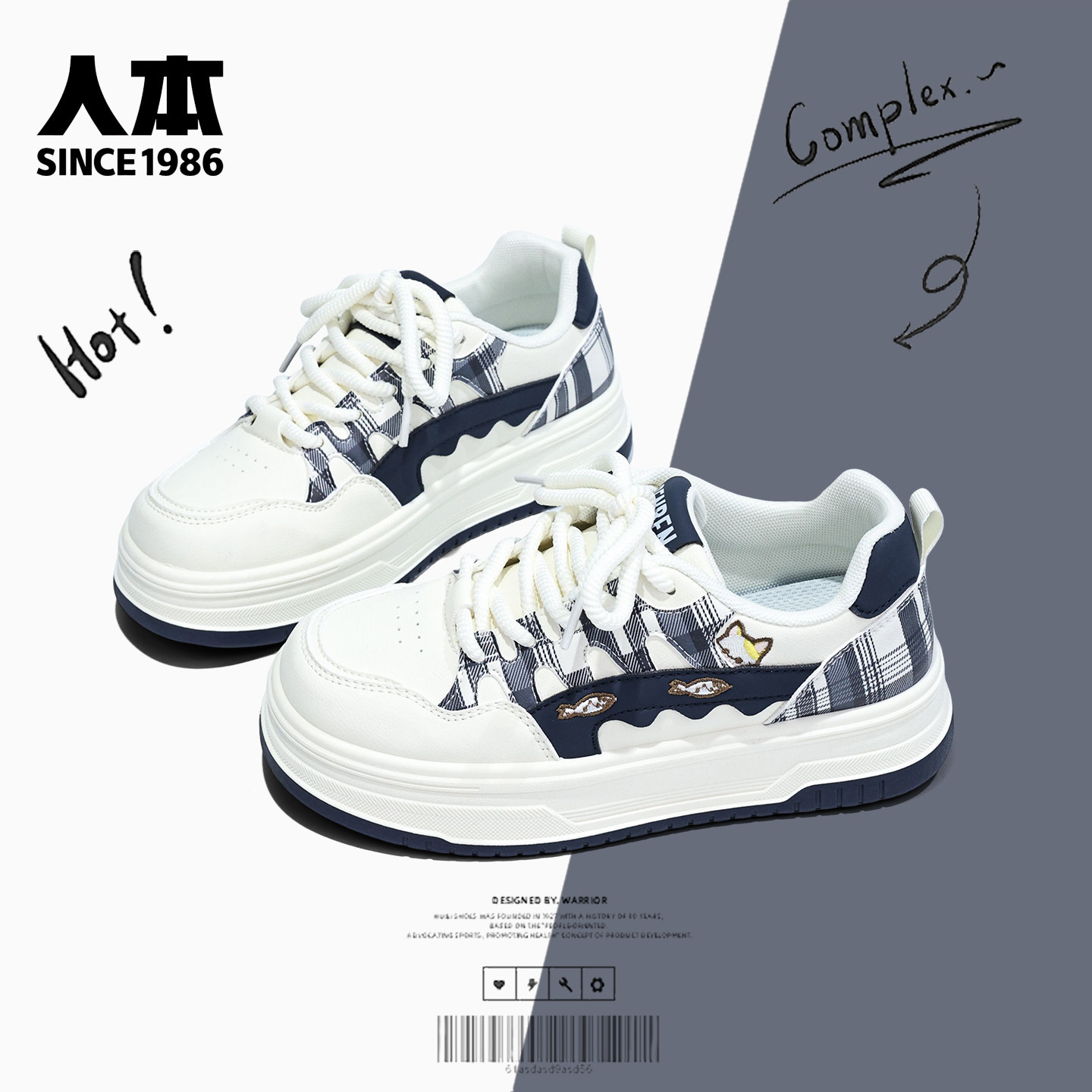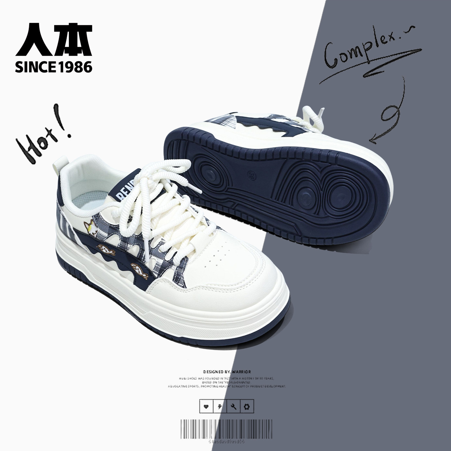 人本鞋子女款2026春季新款女学生百搭厚底板鞋可爱运动休闲小白鞋