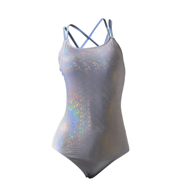 游泳衣女款碎闪闪亮带胸垫2025新款专业训练竞速连体三角露背泳装
