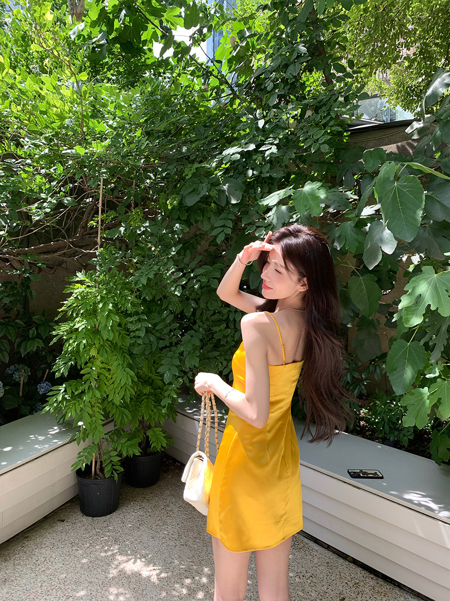 alex stevens夏季缎面垂感连衣裙短款吊带裙女内搭外穿修身裙子