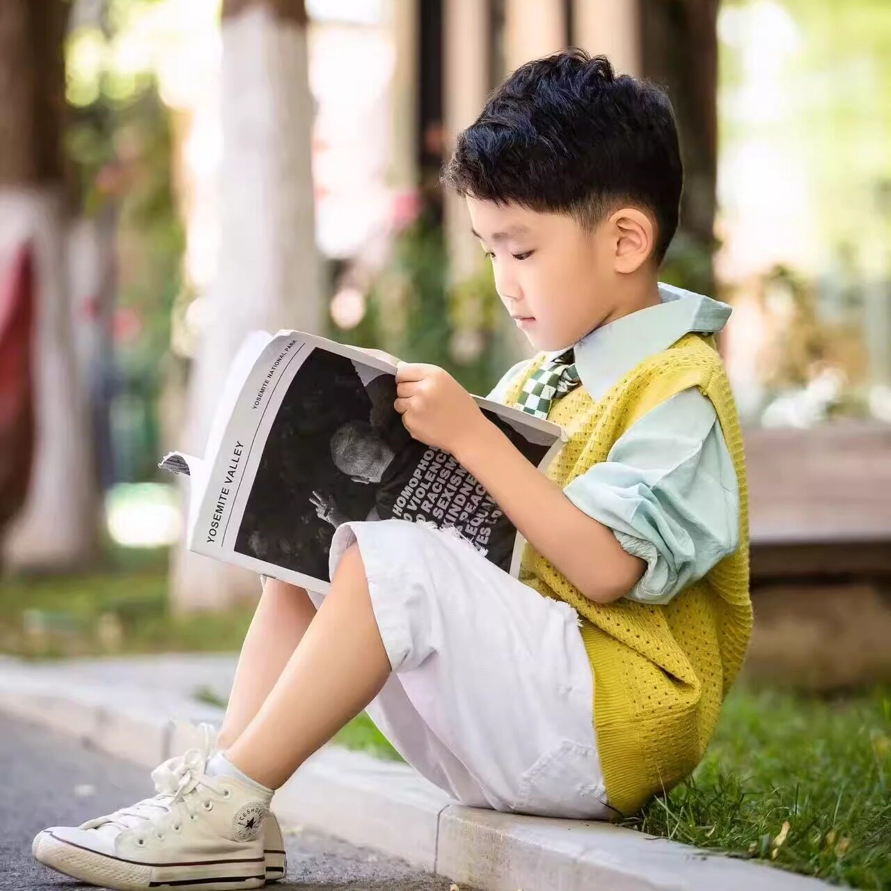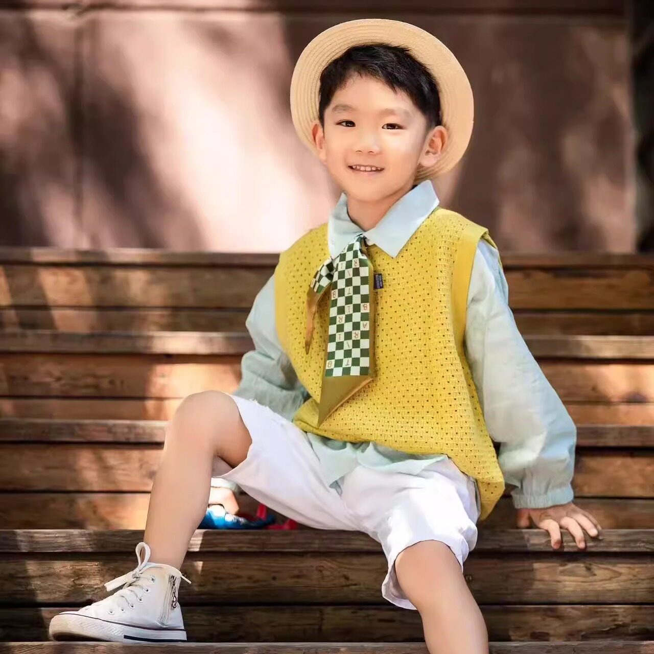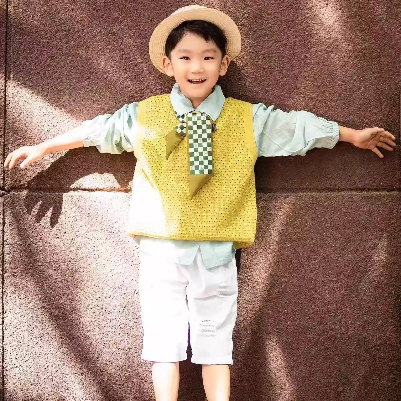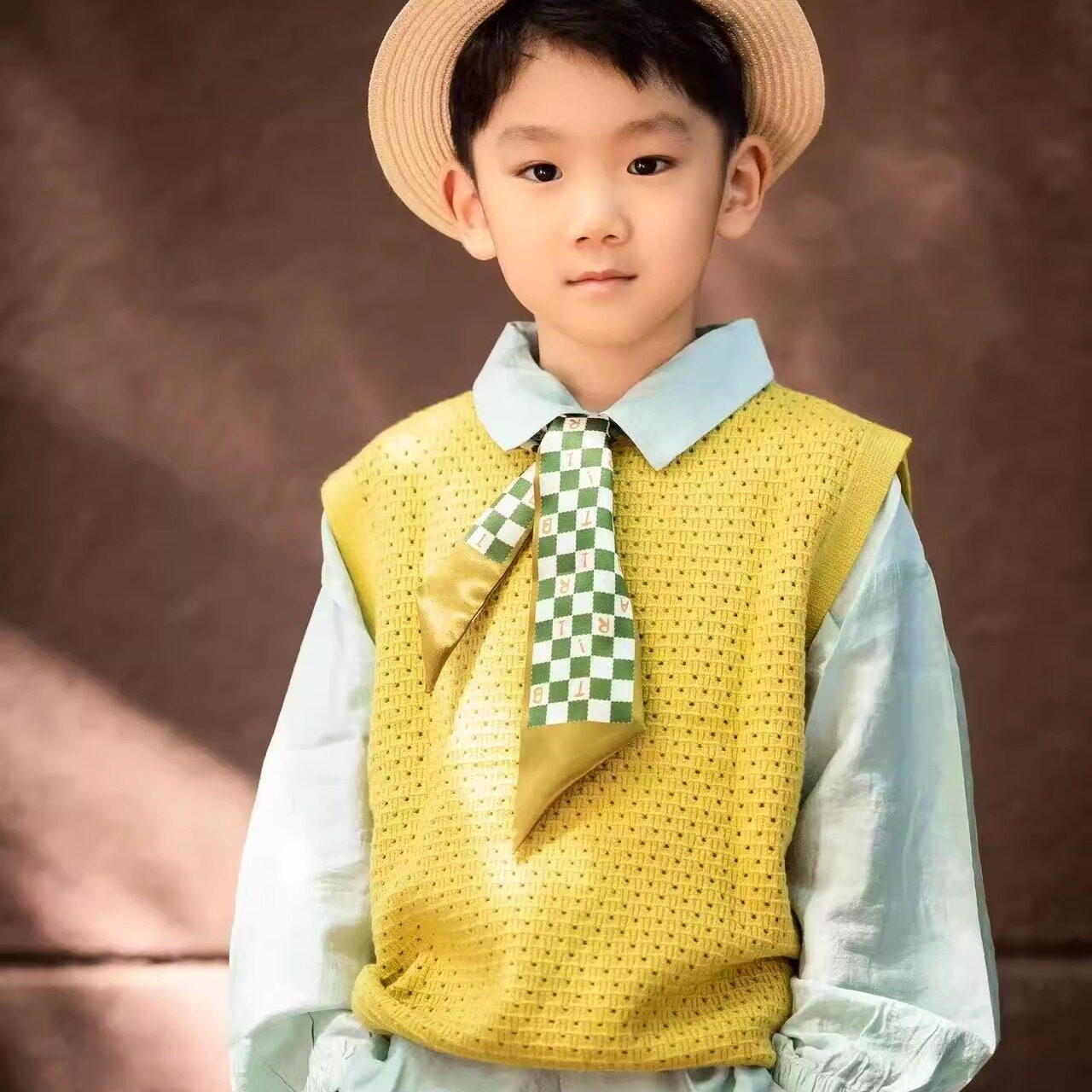 男女童小清新背心黄色摄影拍照儿童打底衫气质毛衣马甲洞洞衫上衣