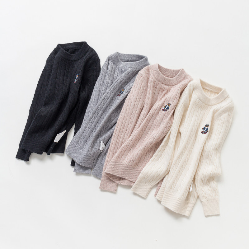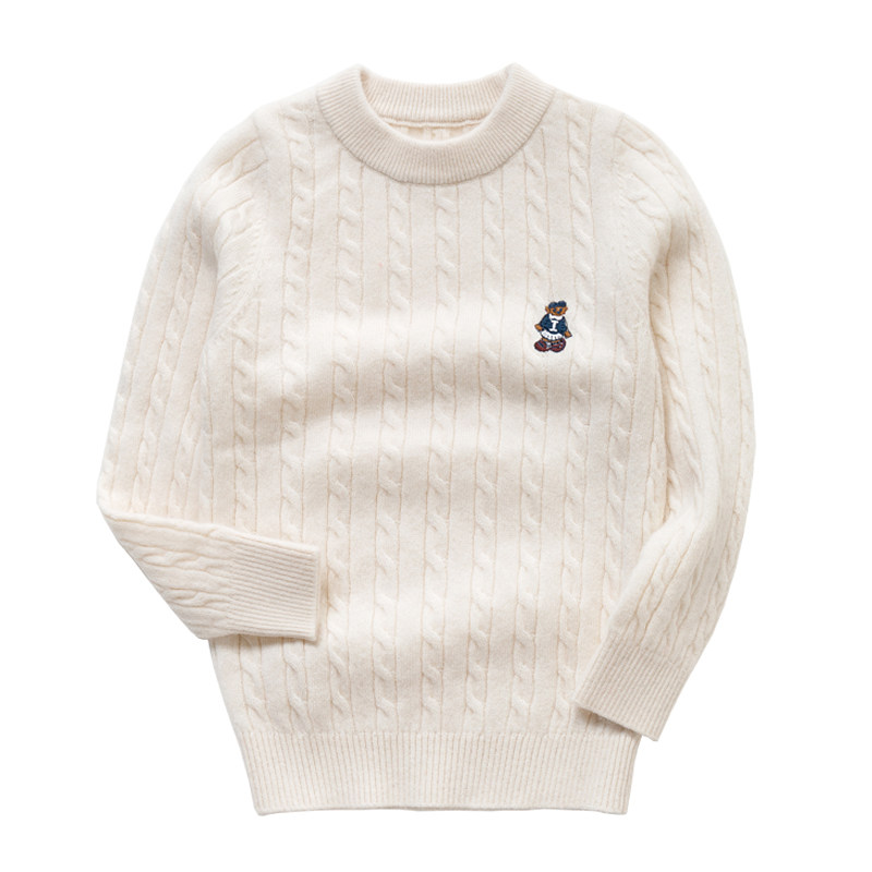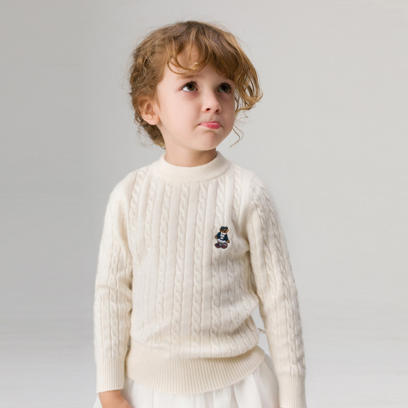 洪叶儿童毛衣男童女童羊绒衫薄款打底衫宝宝羊毛衫白色秋冬款小熊