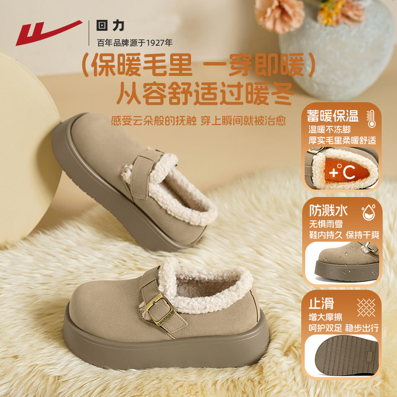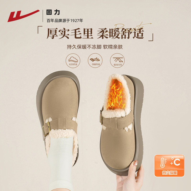 回力厚底雪地靴女2026新款冬季加绒保暖全包勃肯女鞋加厚毛毛棉鞋