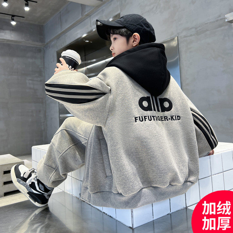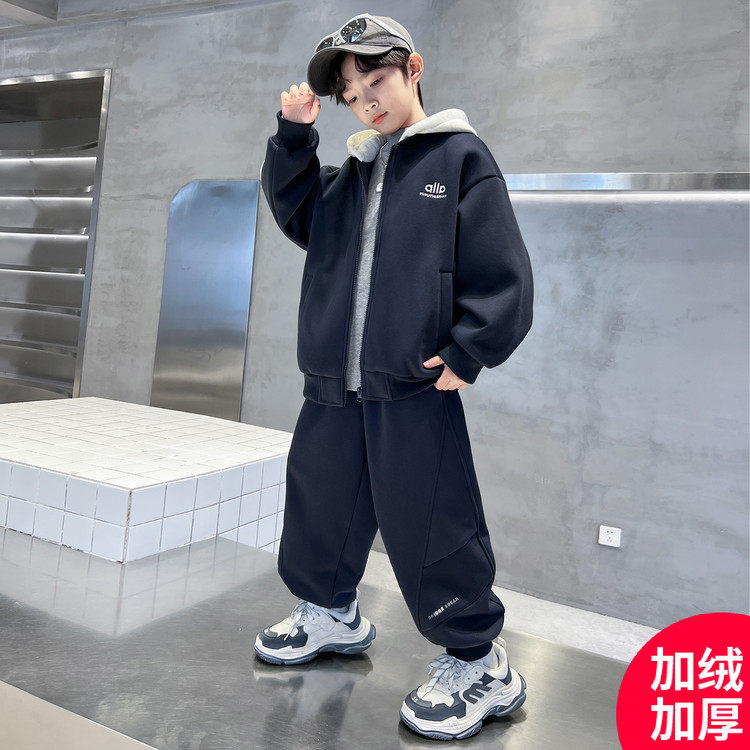 男童冬装加绒加厚套装2025新款中大儿童冬季休闲运动时髦帅气潮流