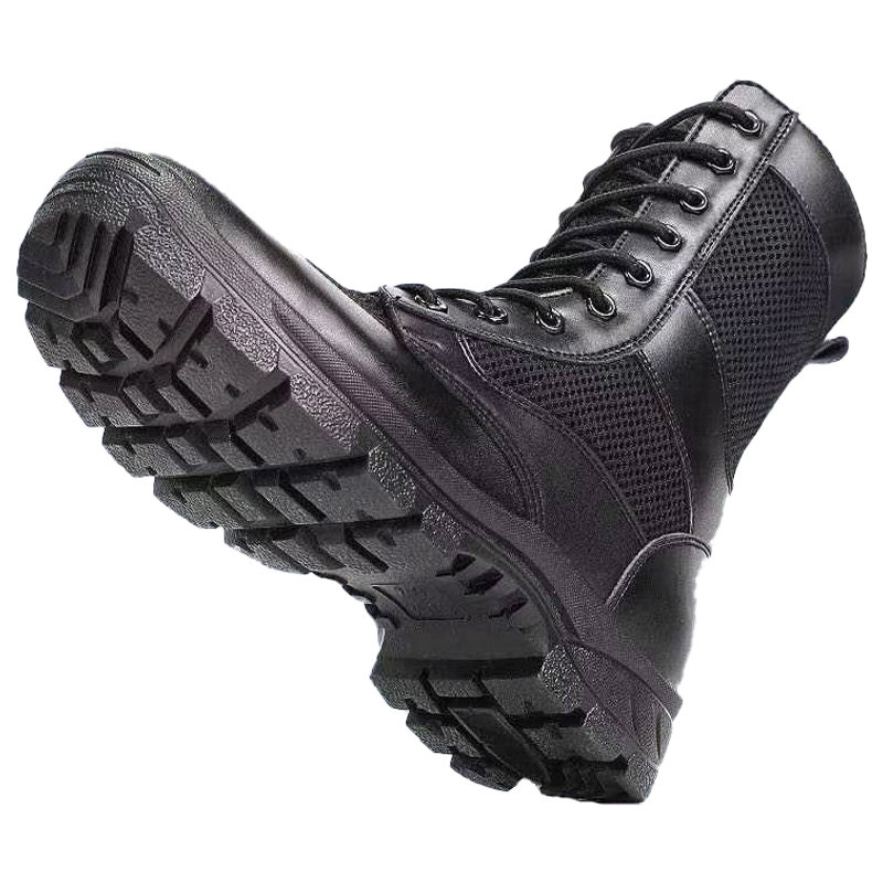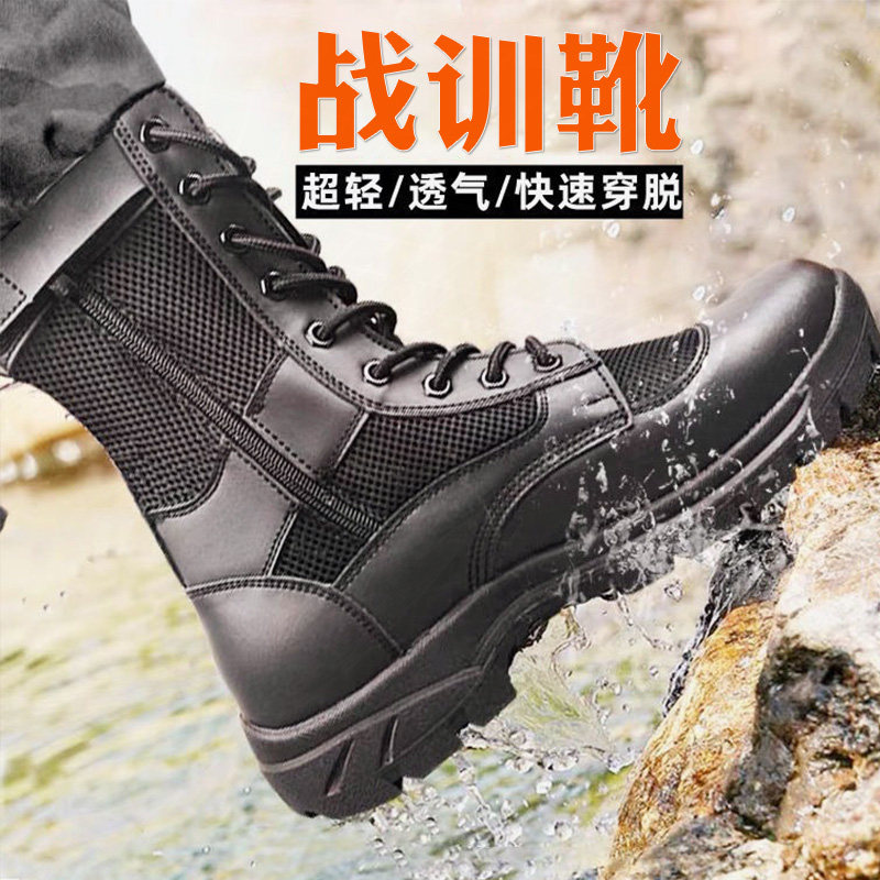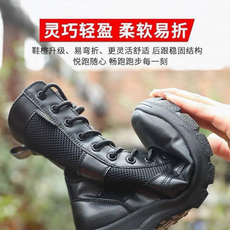作训战靴男款夏季超轻高帮安保鞋透E气保安黑色网面拉链军训战训