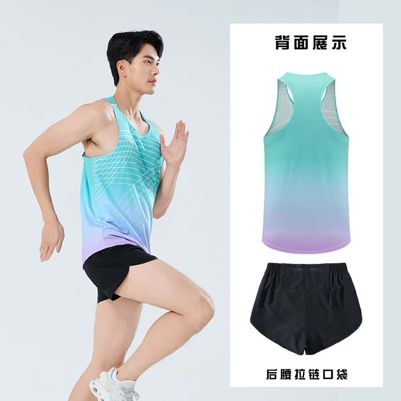 专业跑步背心田径服运动套装男女马拉松速干比赛服健身训练服上衣