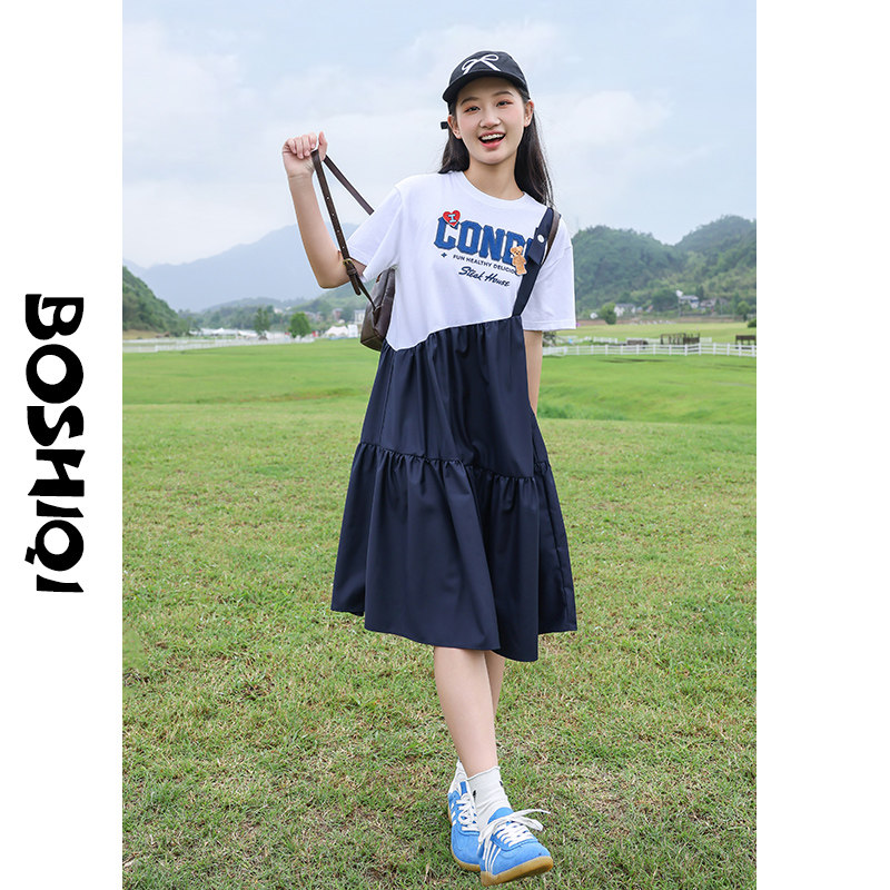 初中生假两件连衣裙夏装2026新款少女宽松洋气青少年高中学生裙子