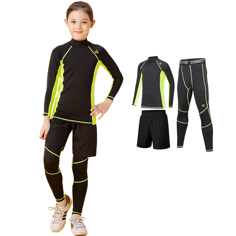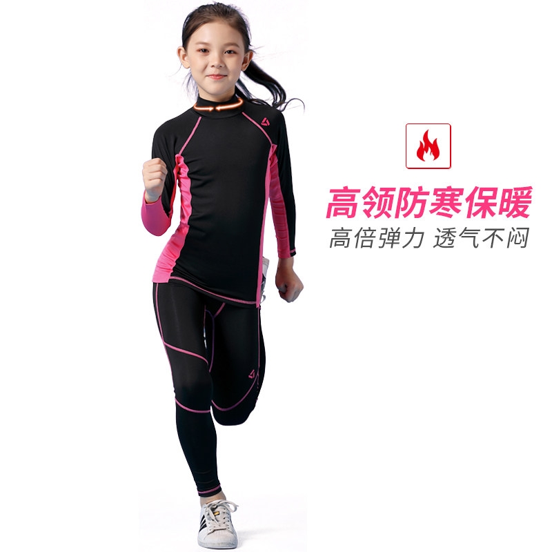 秋冬儿童紧身衣训练服跑步运动滑雪速干透气高领健身瑜伽女童套装