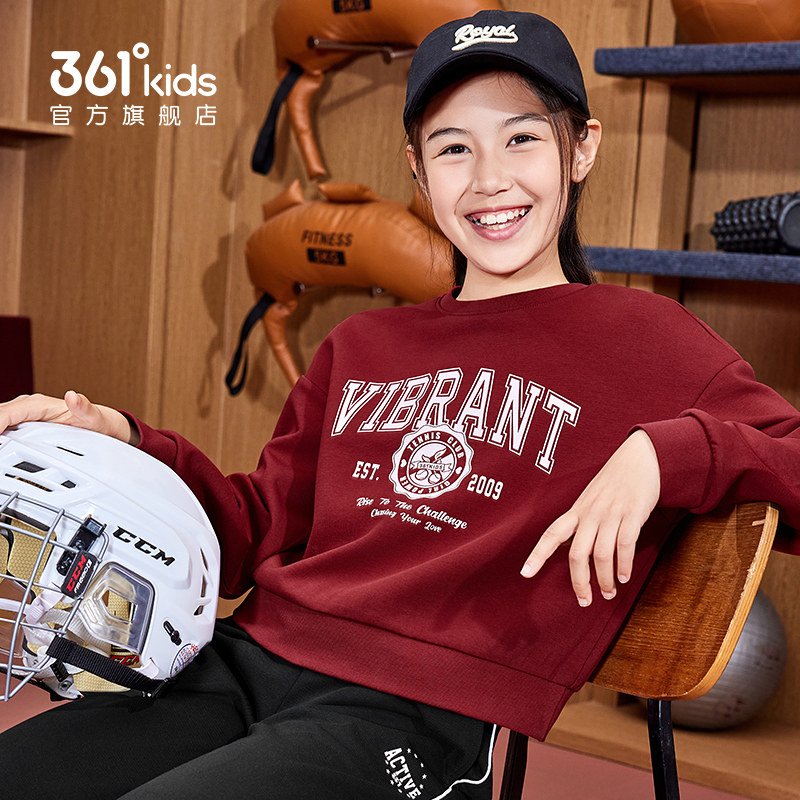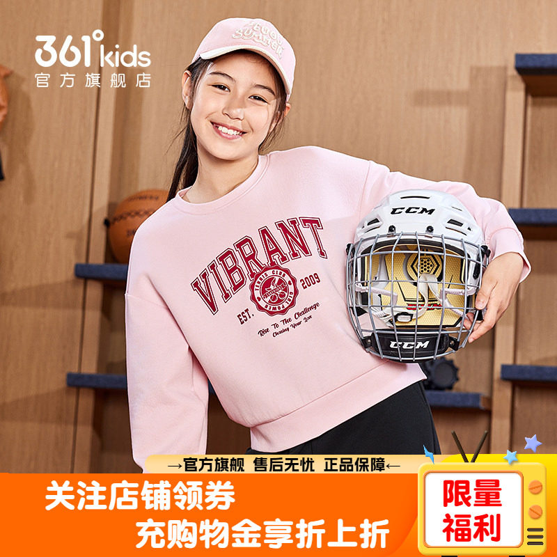 361度童装女童套头卫衣2026春季新款宽松舒适上衣小学生女款长袖
