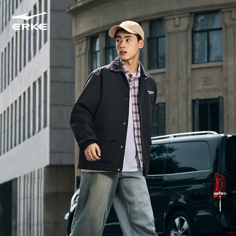 鸿星尔克棉服男款2026冬季新款男士复古撞色翻领休闲保暖夹克外套