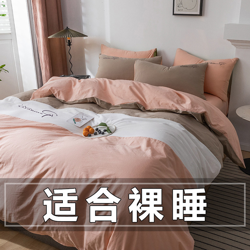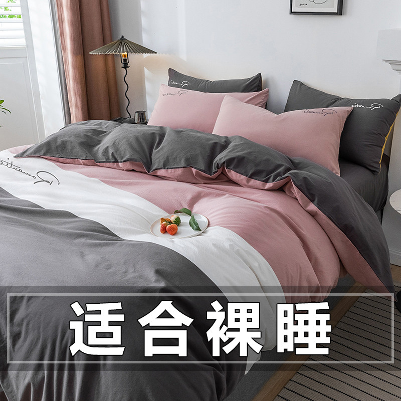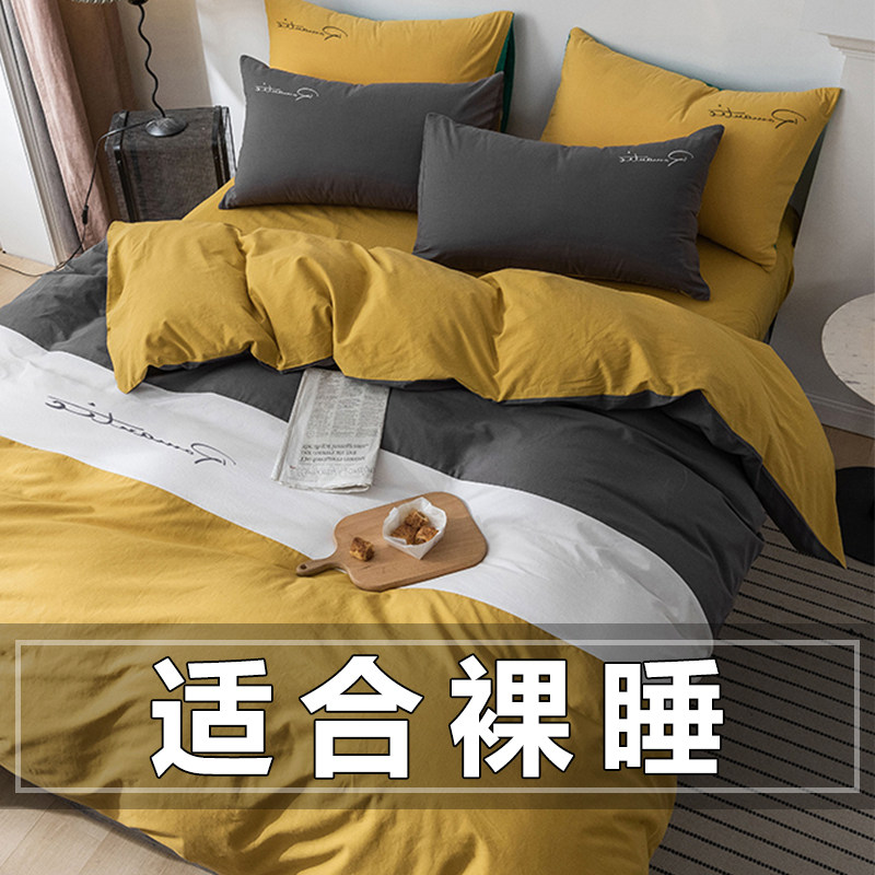 水洗棉床上用品四件套春夏季纯棉被套男高档学生宿舍床单三件套4