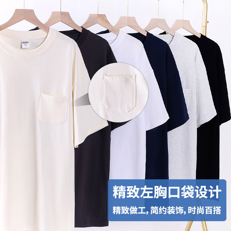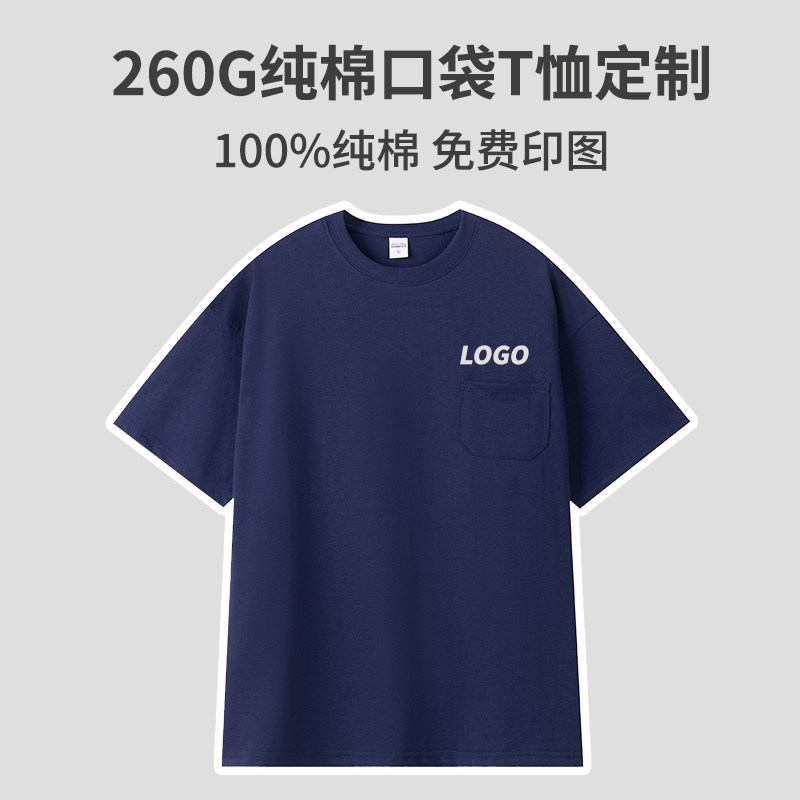 日系260g重磅纯棉口袋T恤定制印logo工作服团队服全棉休闲短袖diy