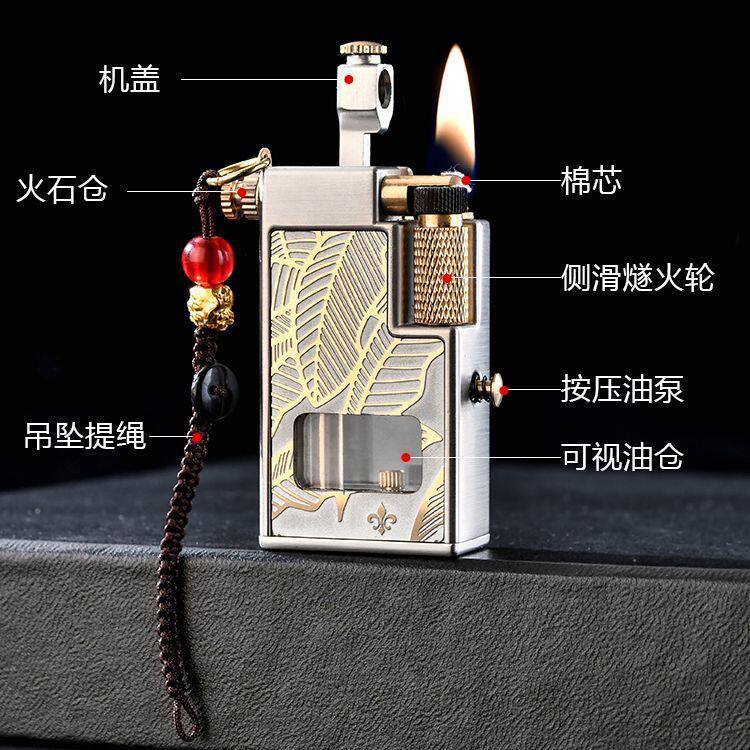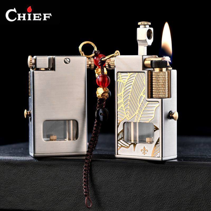 CHIEF/首领按压油泵砂轮煤油打火机可视仓个性创意定制刻字礼品潮