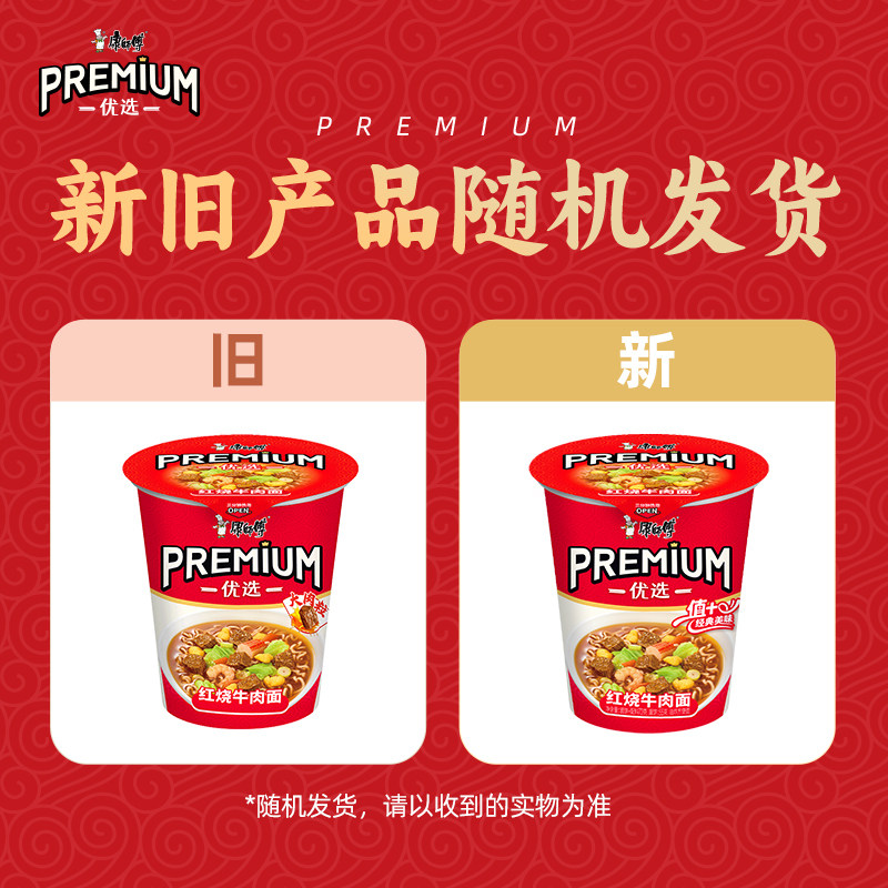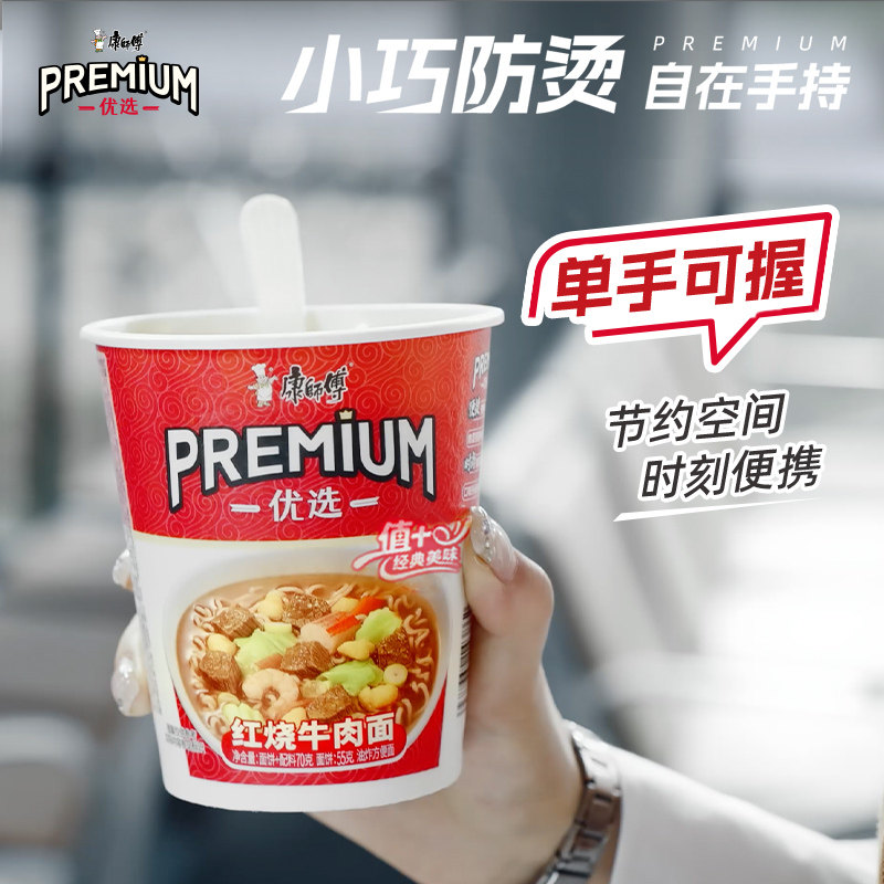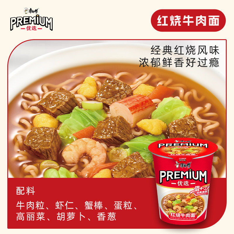 康师傅方便面优选PREMIUM红烧牛肉面70g*12杯整箱装泡面速食食品