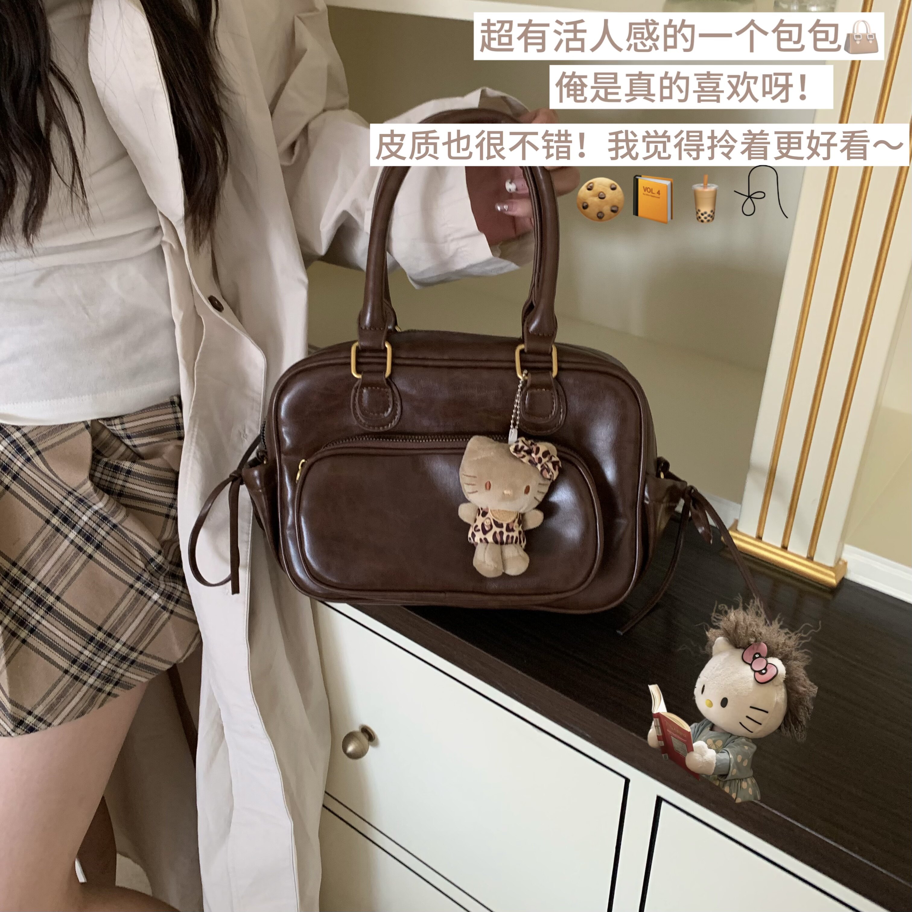 老陈自留!复古皮质手提包女大容量百搭休闲精致双肩包通勤斜挎包