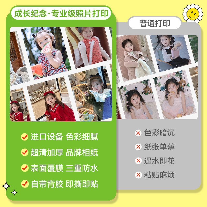 幼儿园成长手册照片打印冲印洗背胶可黏粘贴做成相册档案贴纸定制