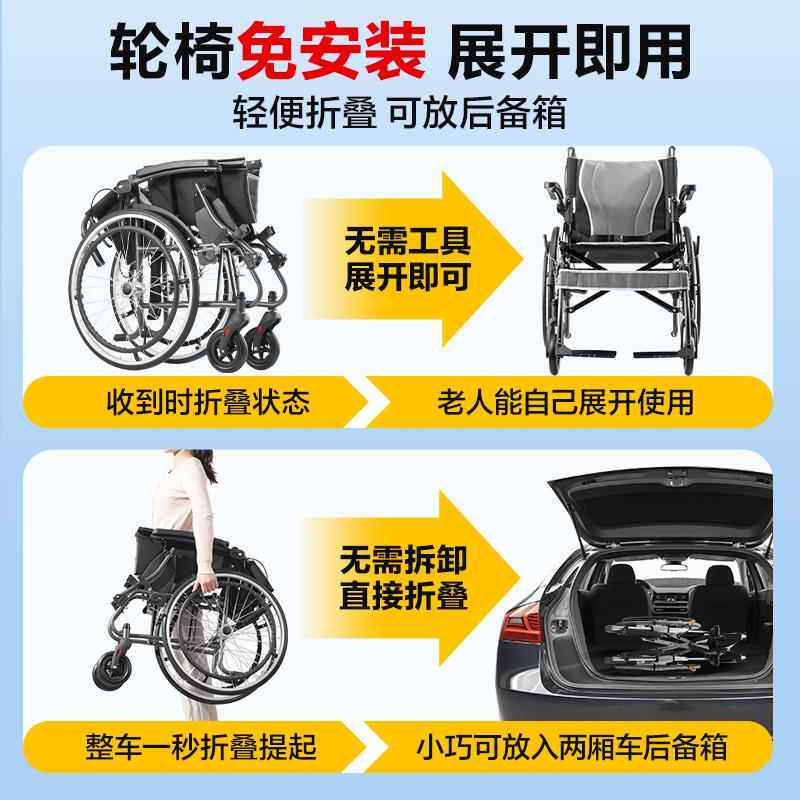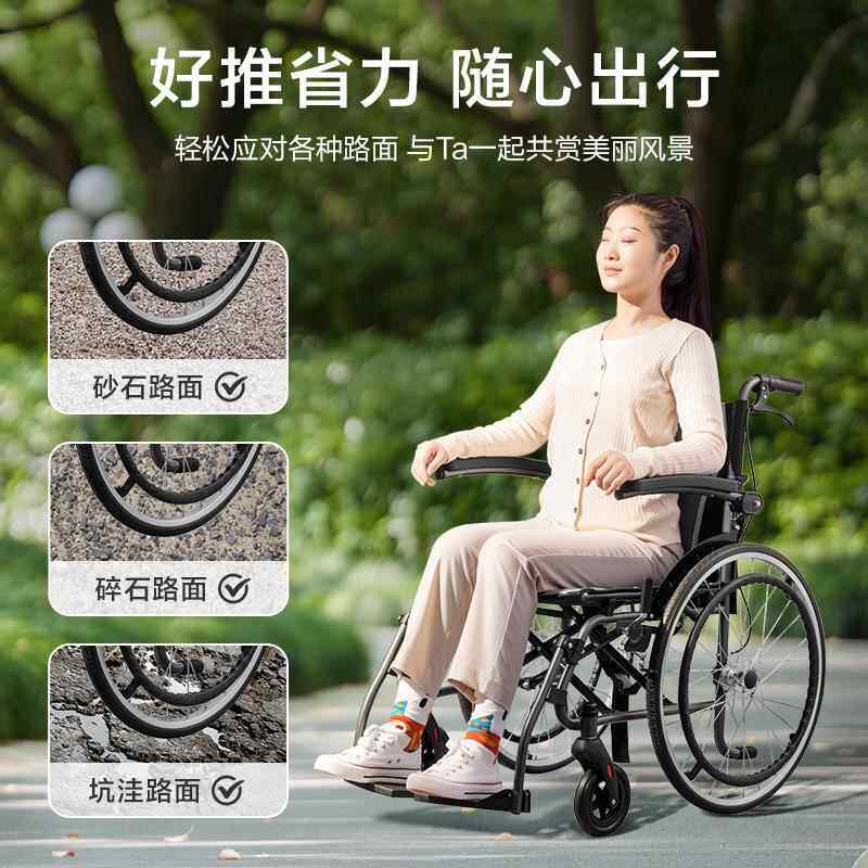 可孚铝合金轮椅超轻便折叠可携式老人专用成人推车旅行旅游代步神