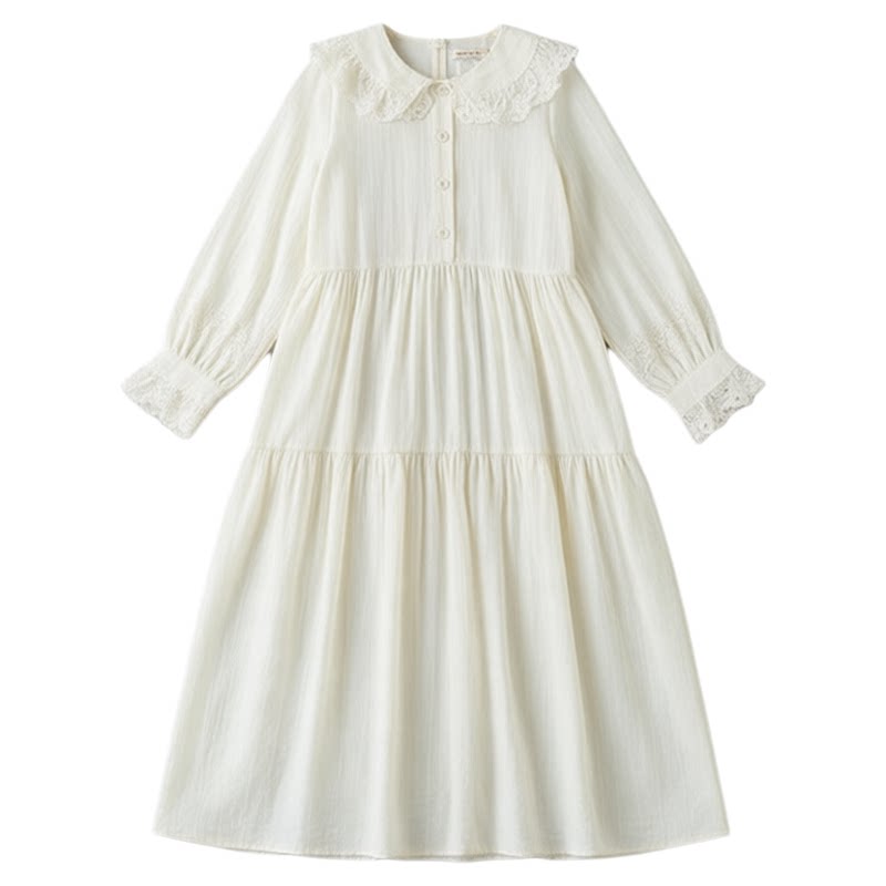 早春女童连衣裙长袖花边娃娃领长裙2026新款中大童儿童洋气公主裙