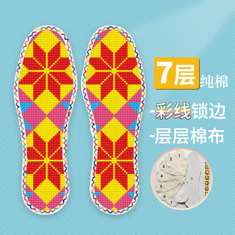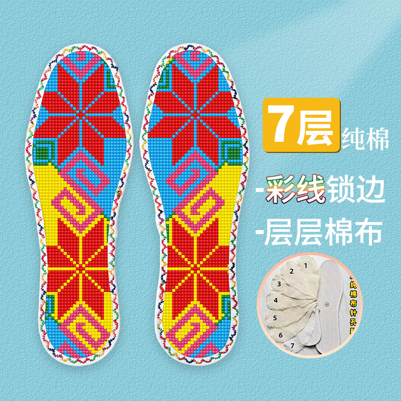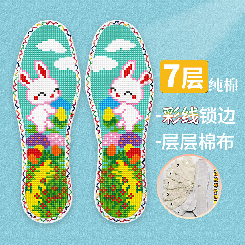 新款荷叶花边十字绣鞋垫半成品手工刺绣七层纯棉加厚情侣卡通吸汗