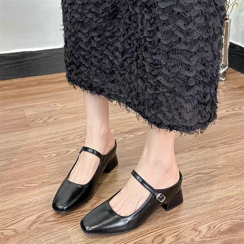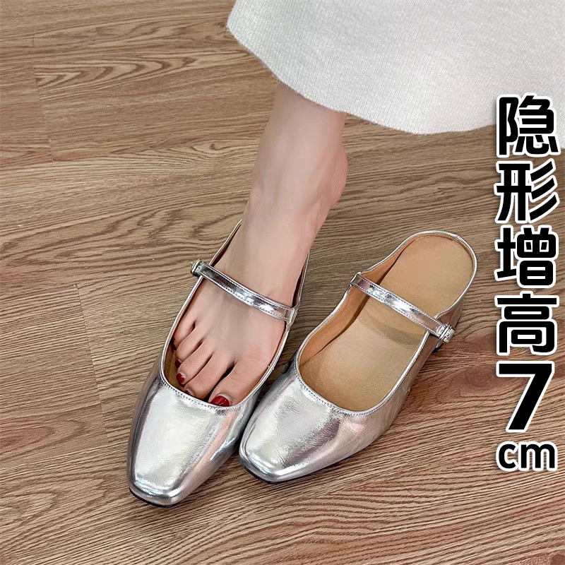 香港法式包头半拖鞋女外穿2025新款春夏百搭小个子内增高浅口单鞋