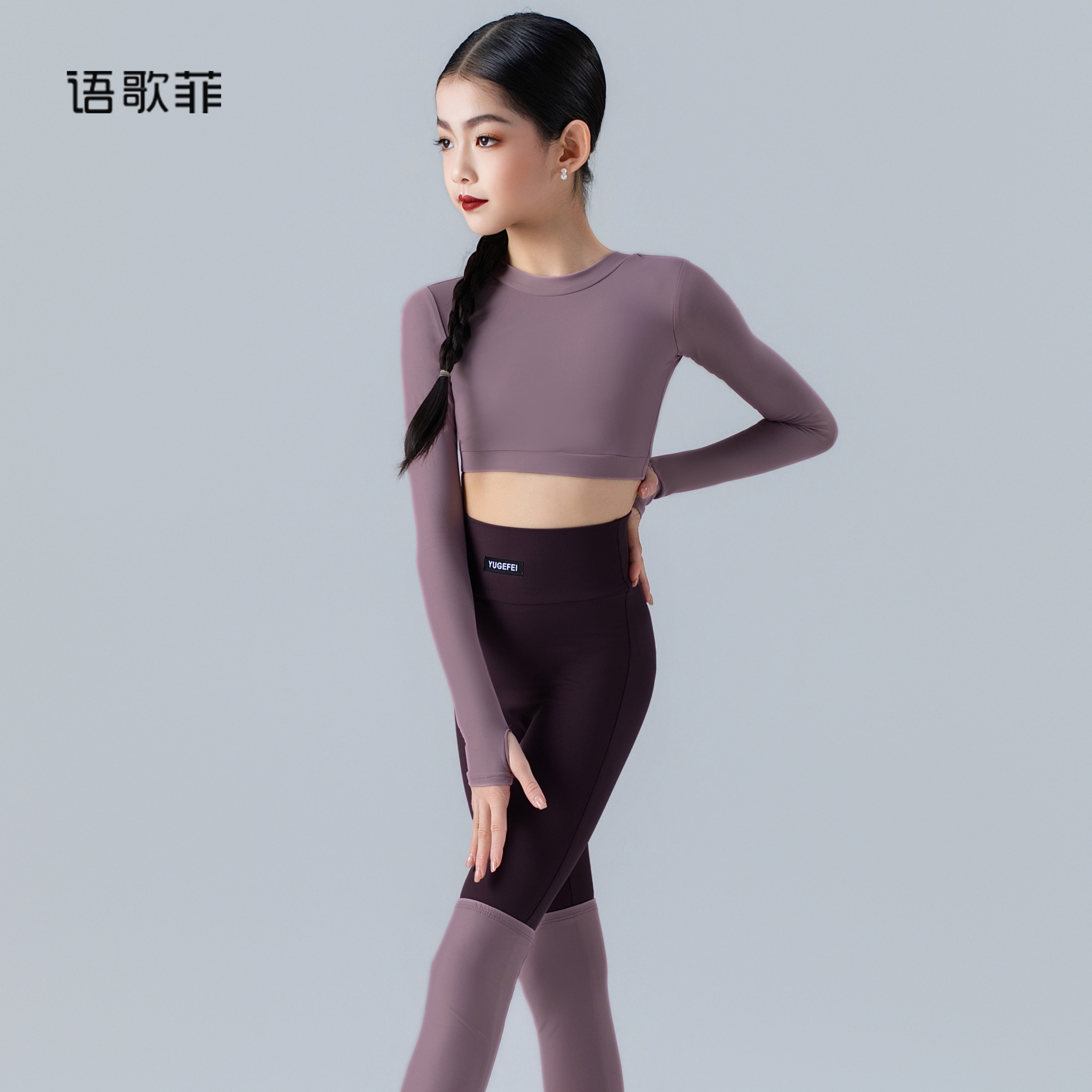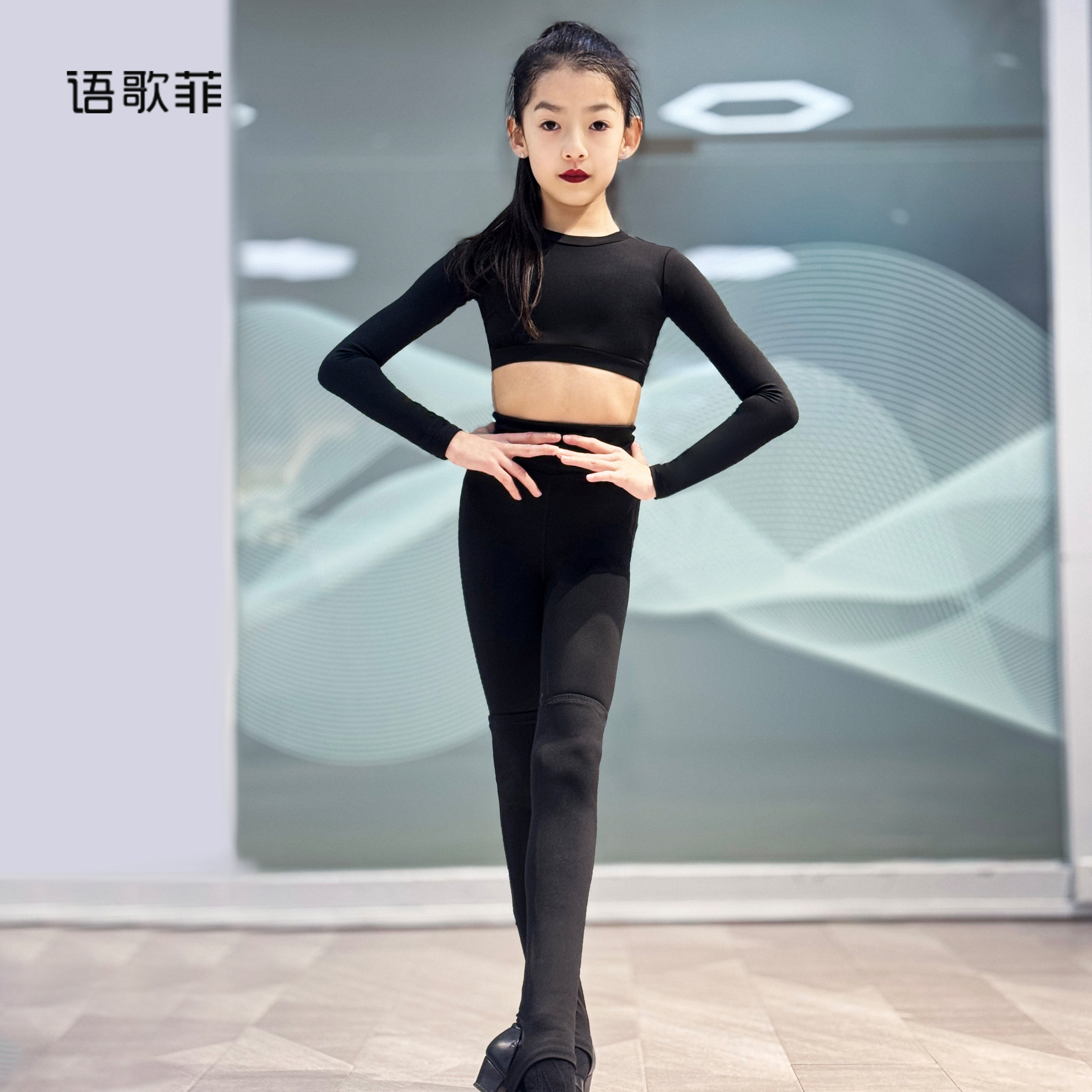 语歌菲拉丁舞服新款女童练功服短款长袖上衣瑜伽裤训练套装运动服