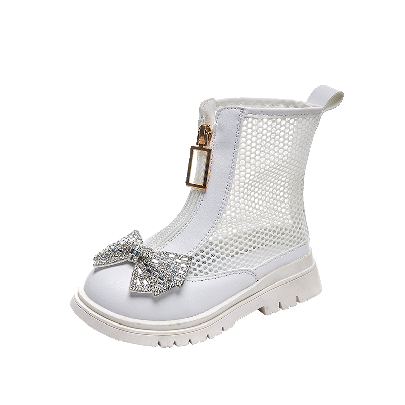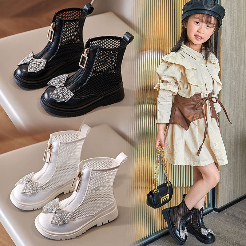 儿童靴子黑色女童马丁靴模特走秀夏季薄款镂空透气凉鞋小女孩短靴
