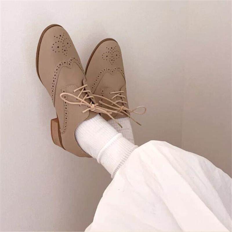 2026春季新款隐形内增高5厘米 真皮圆头复古镂空系带浅口单鞋A553