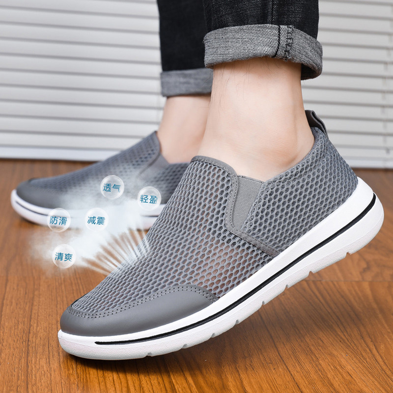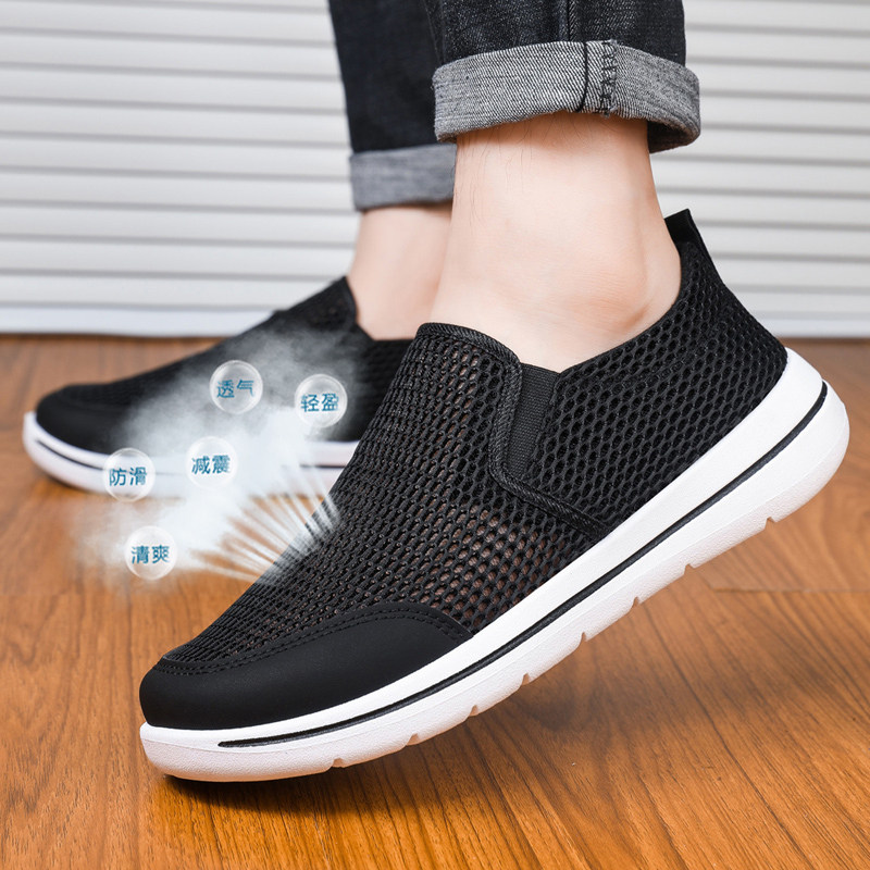 夏季薄款一脚蹬男鞋透气网鞋网面镂空轻便防滑爸爸凉鞋软底大网眼