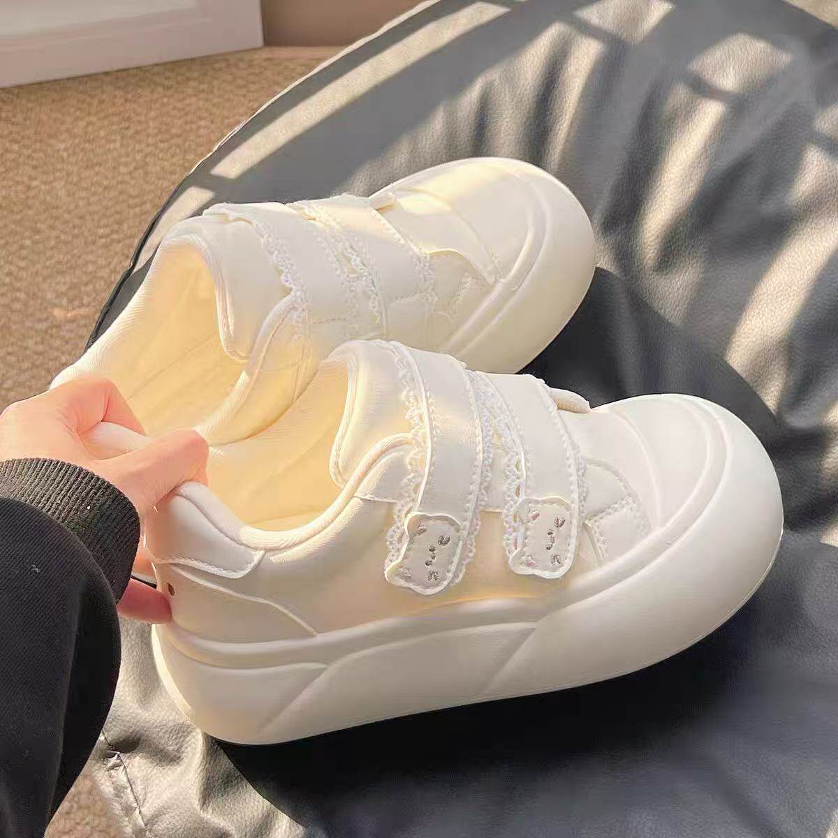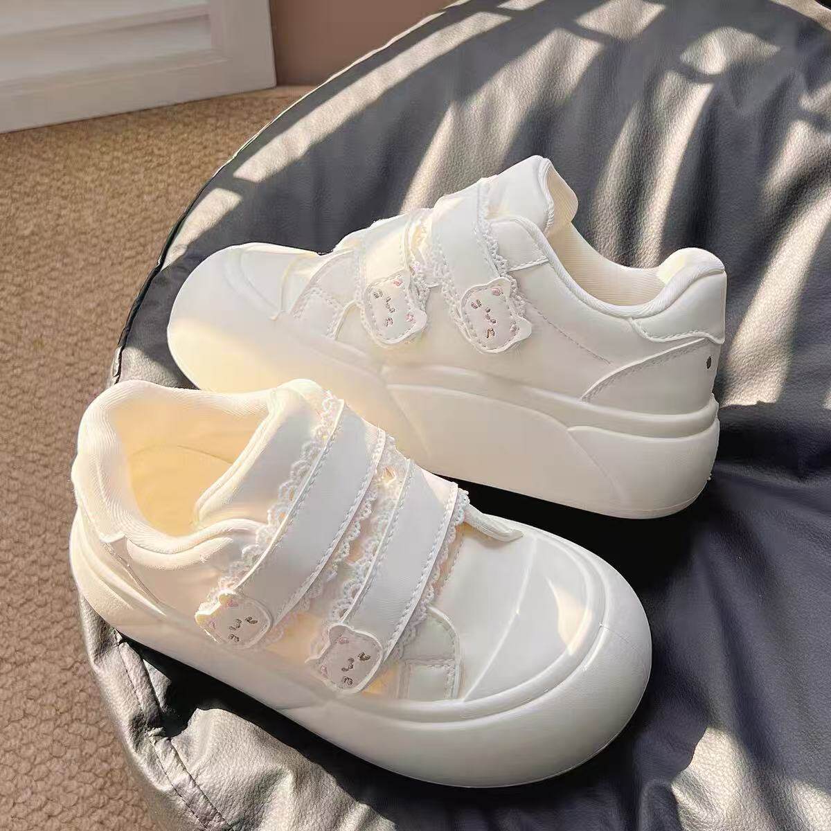 女童运动鞋白色面包鞋女款大童鞋子2026新款春季学生板鞋厚底休闲
