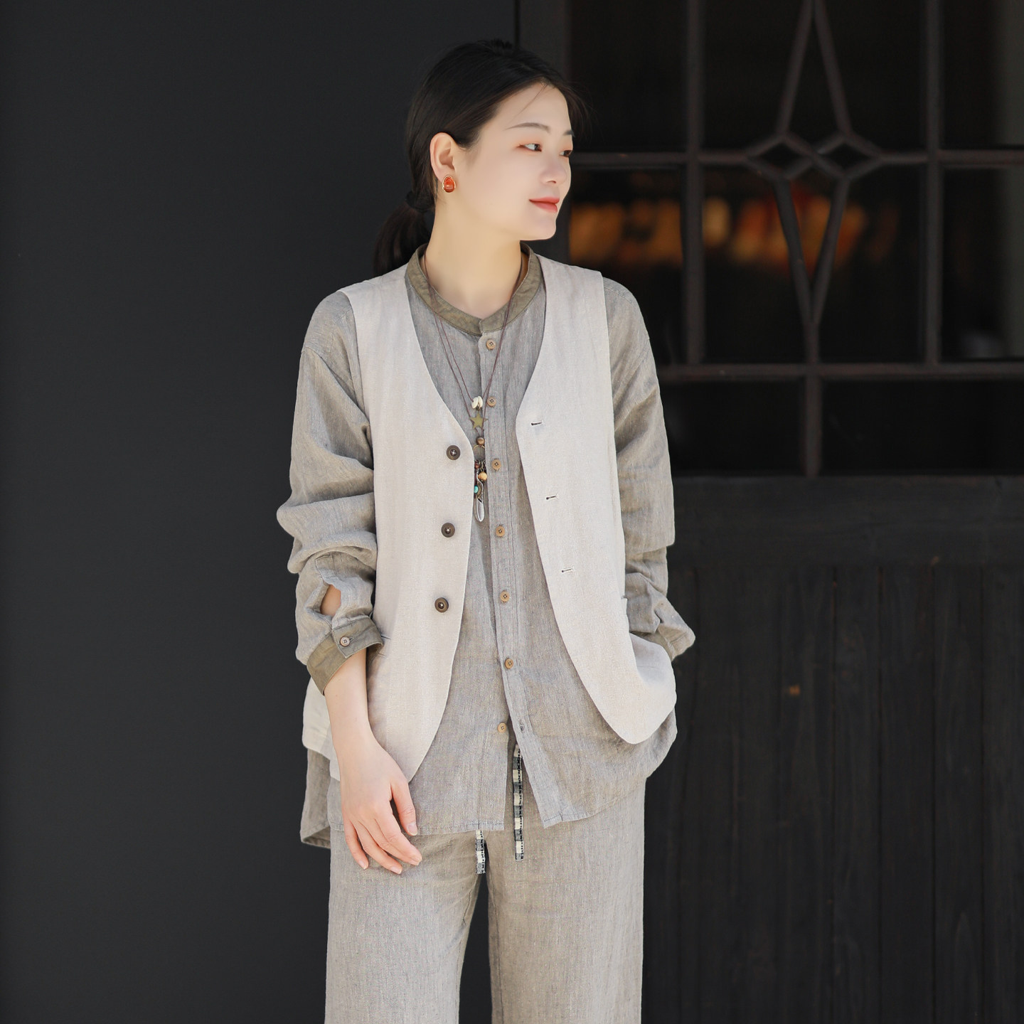 古石后原创长袖衬衫女款2026新款春装汉麻薄款防晒外套休闲上衣