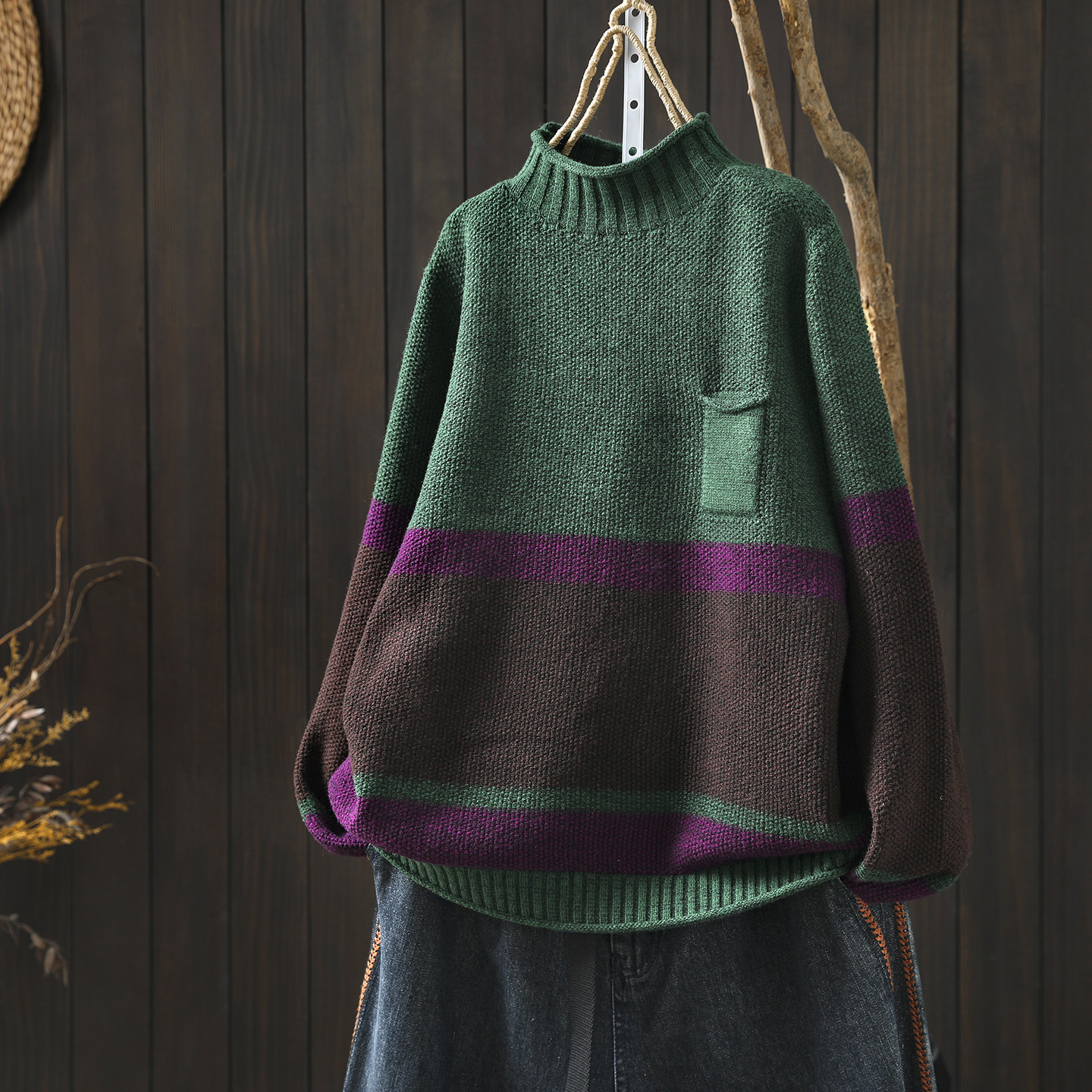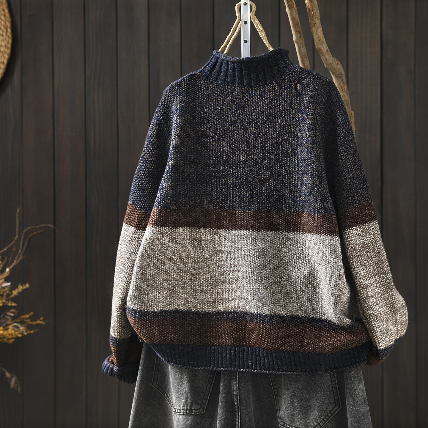半高领设计感毛衣女款2026新款冬季棉线宽松复古超好看针织毛线衣