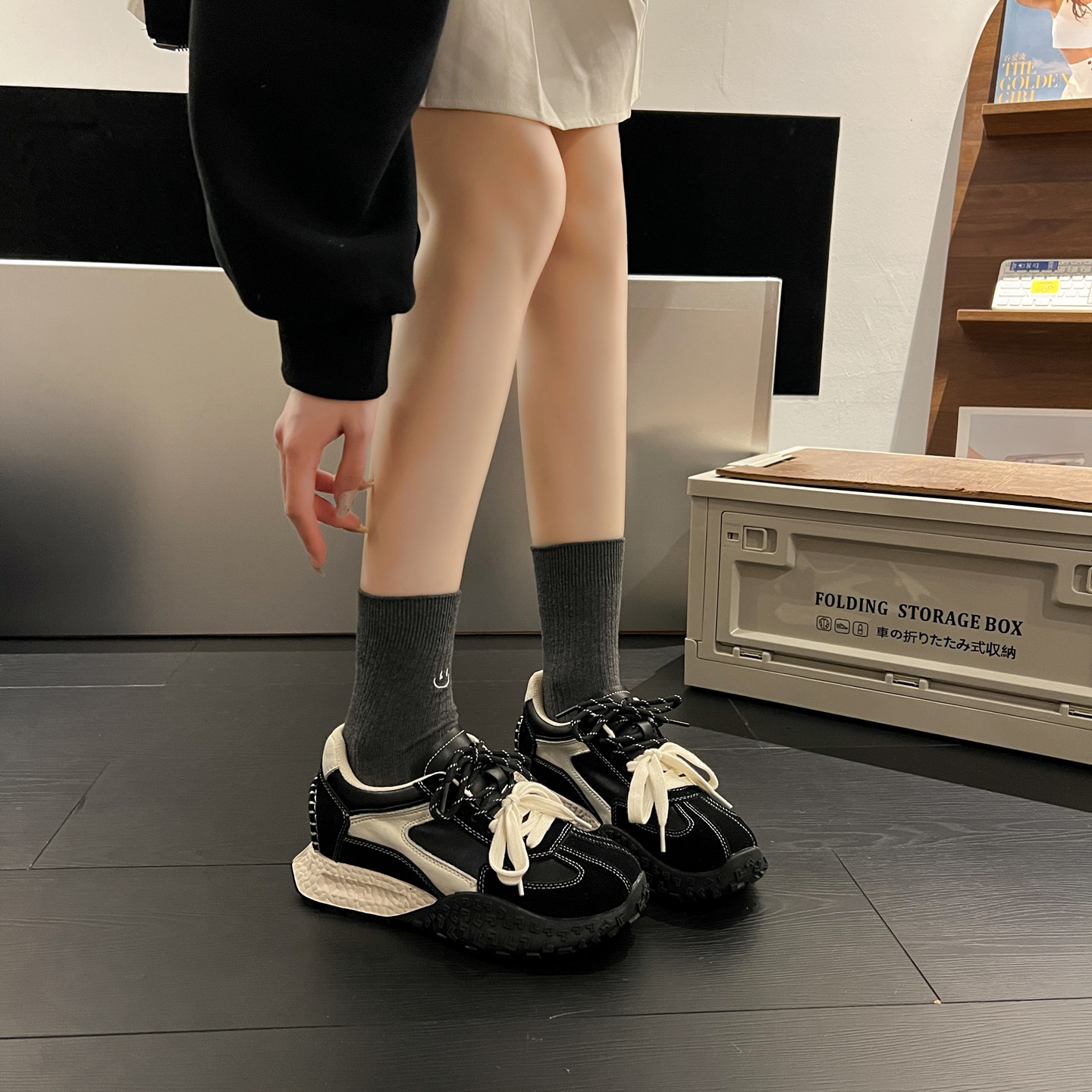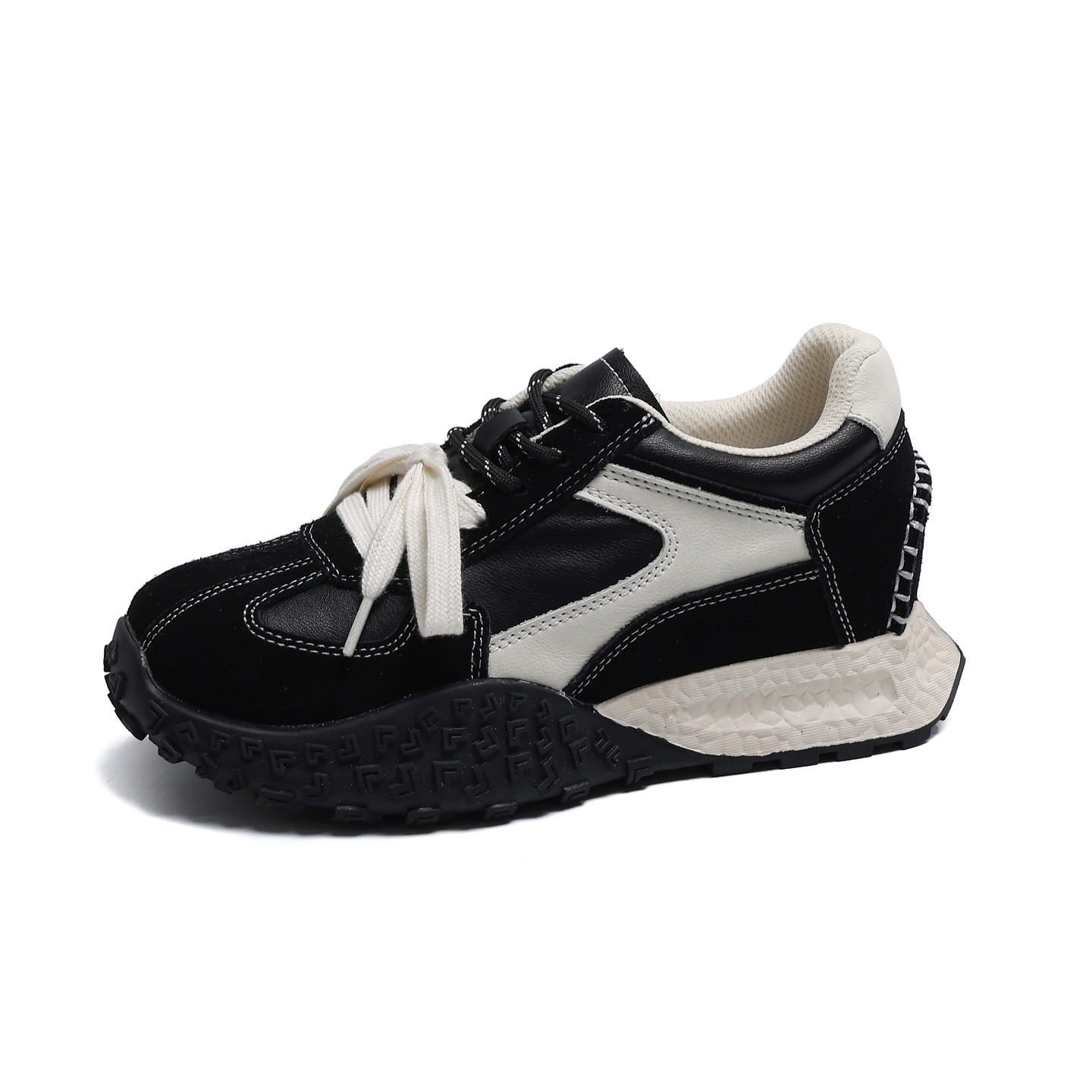 真皮厚底7CM内增高德训鞋女2026春季新款黑色阿甘鞋运动休闲鞋子