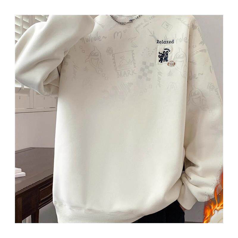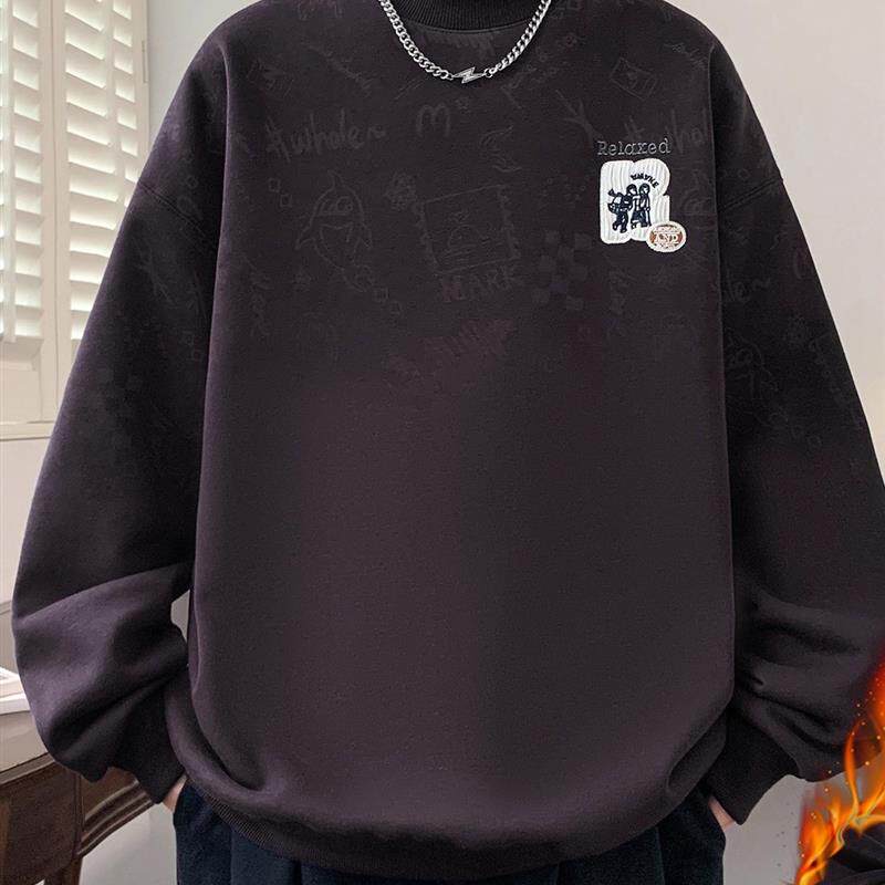 半高领加绒加厚卫衣男款秋冬季潮牌卡通动漫青少年内搭打底衫上衣