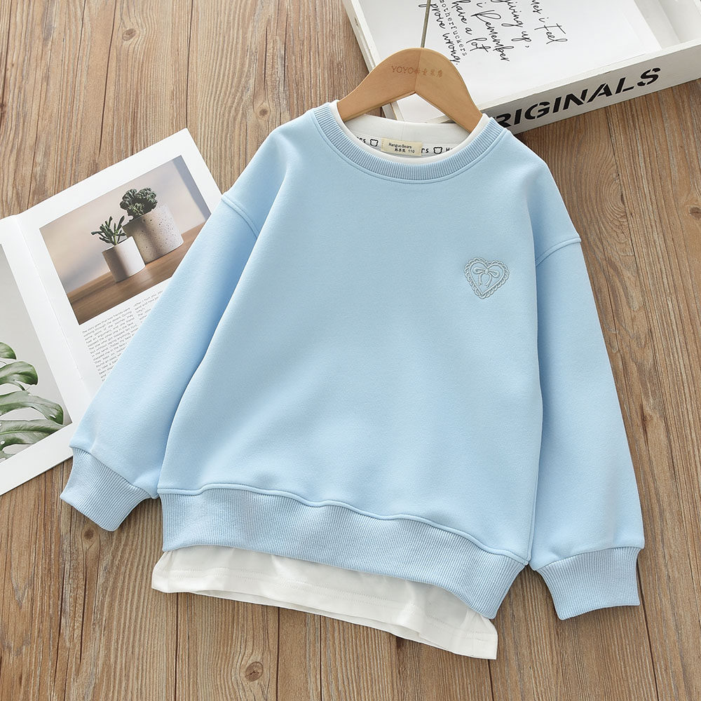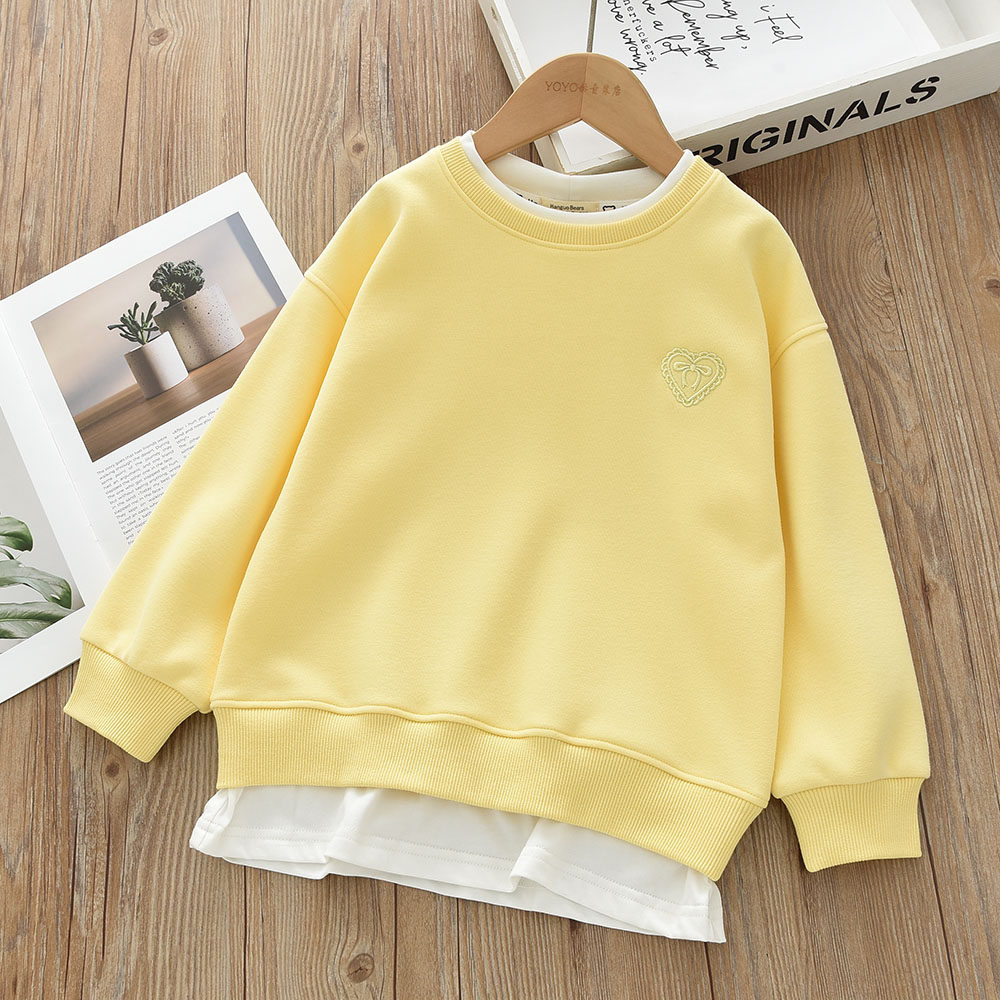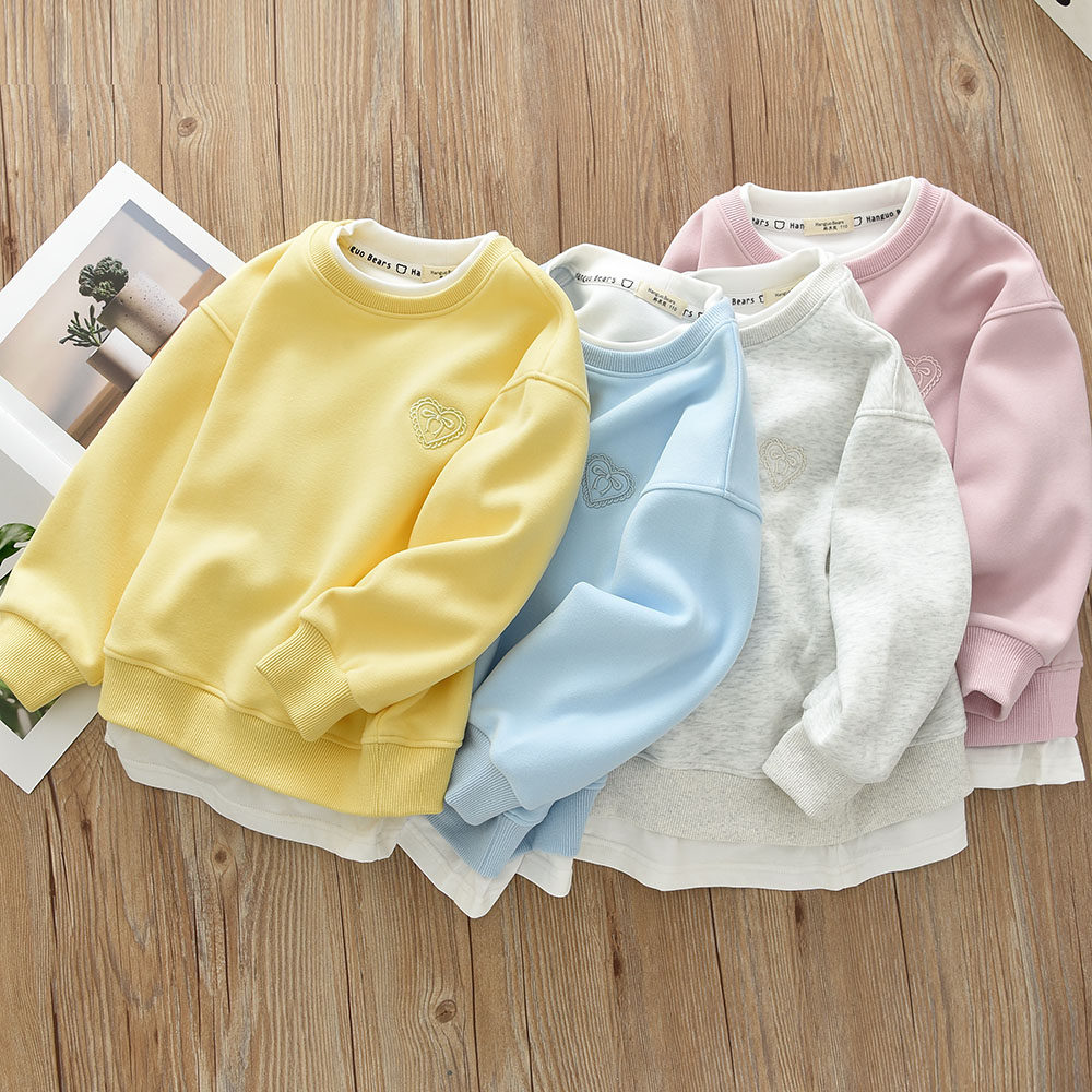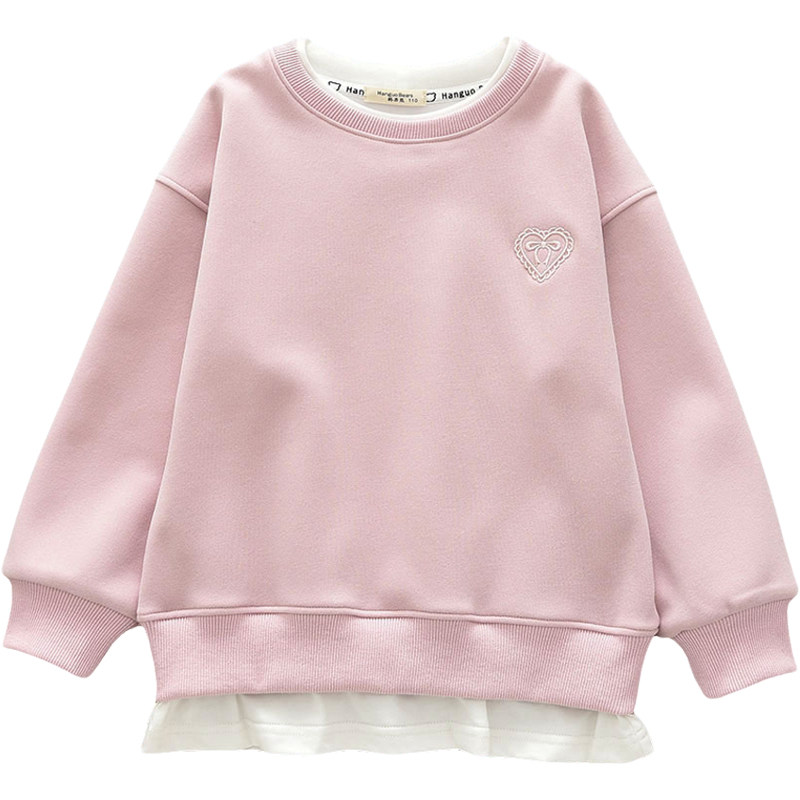 洋气童装2026春款儿童女童卫衣假两件纯色宝宝中大童套头白边上衣