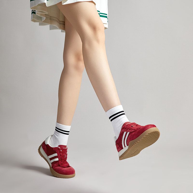 百田森红色复古德训鞋女休闲鞋百搭内增高运动鞋拼色洋气阿甘鞋女