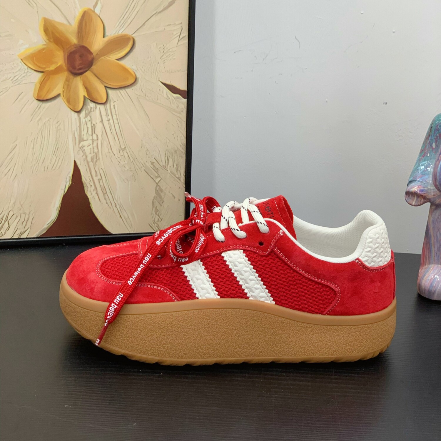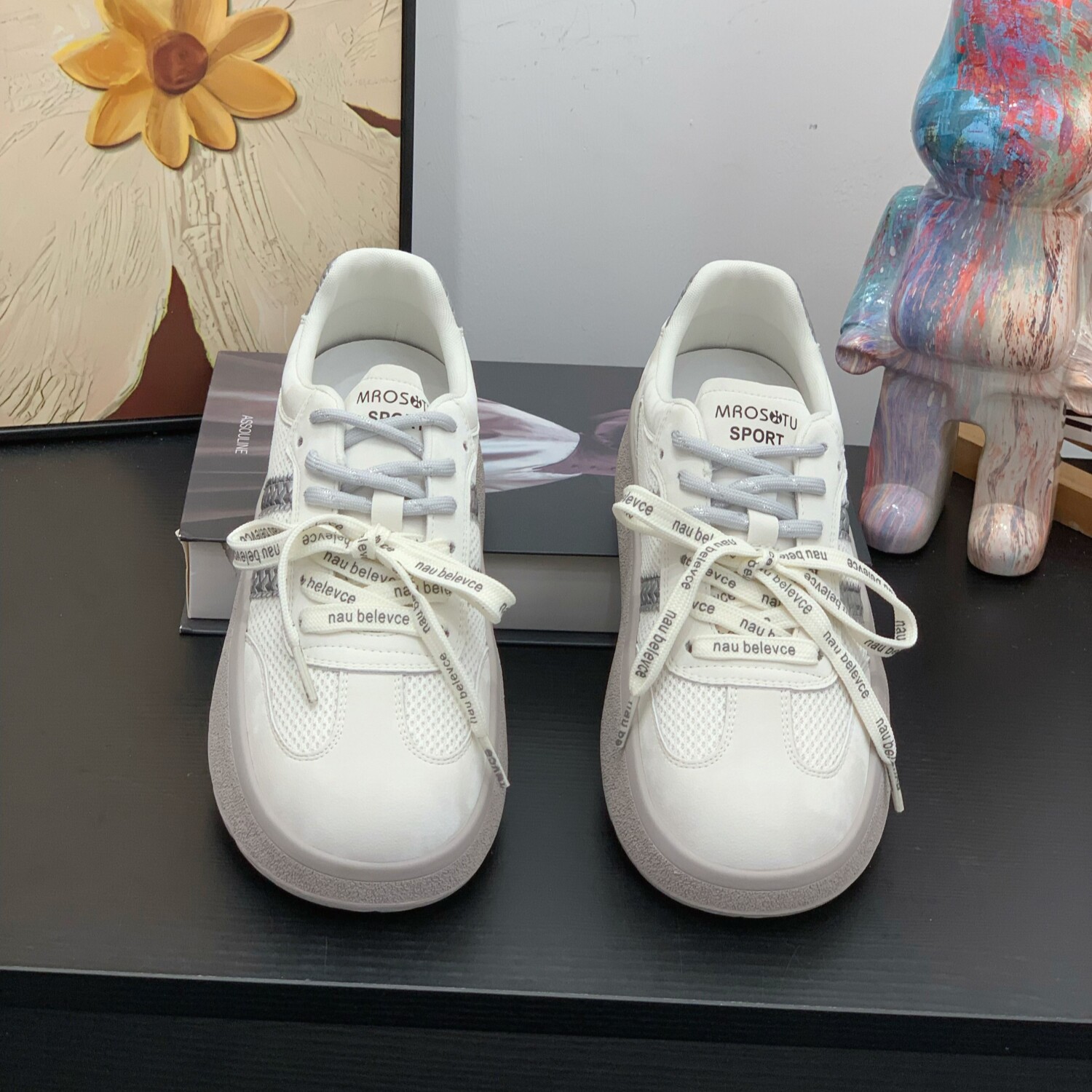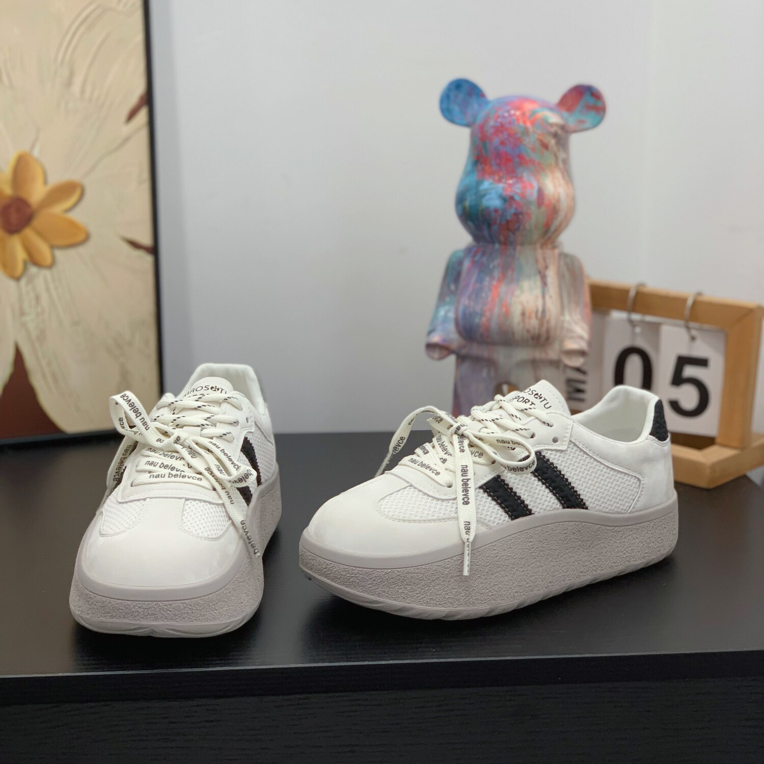 爆款厚底摇摇鞋透气网面德训鞋女2026春季新款复古板鞋真皮小白鞋