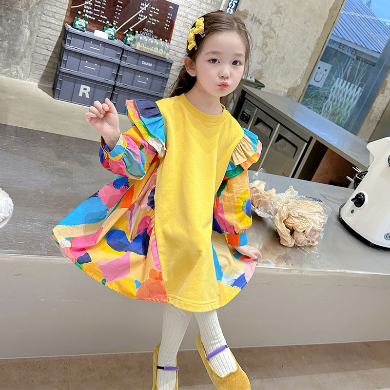 女童连衣裙春装2026新款洋气彩色儿童公主裙韩系穿搭宝宝春秋裙子