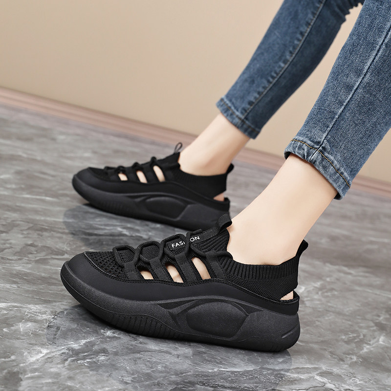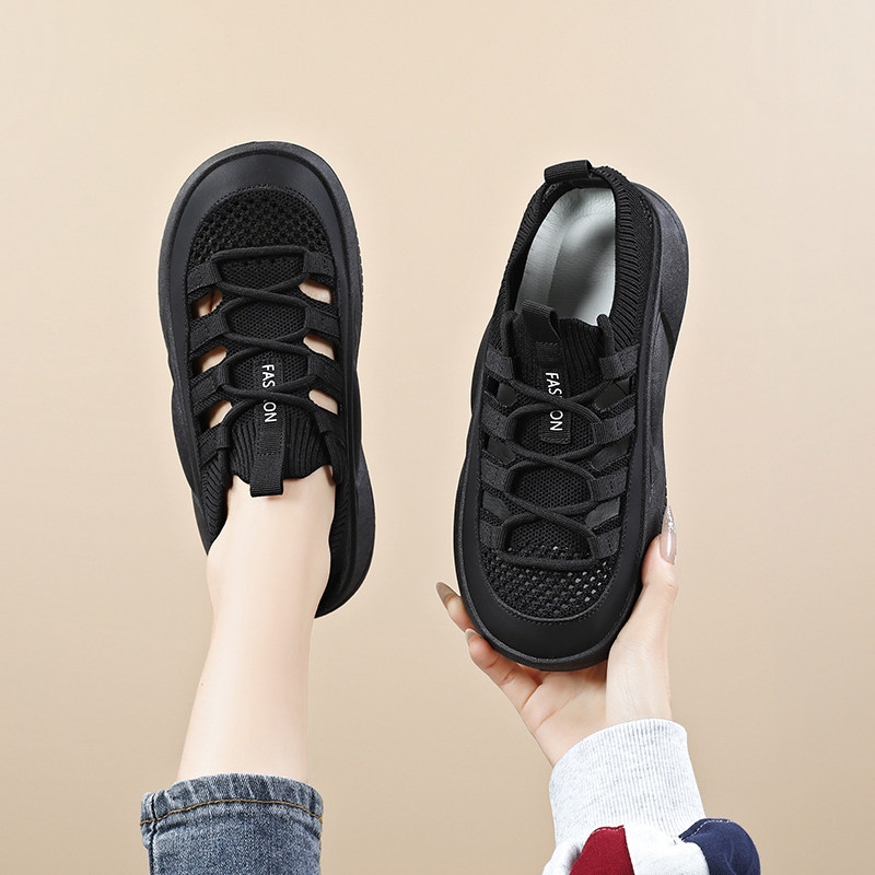 2025新款夏天黑色运动鞋女士夏季网面透气薄款老爹鞋上班包头凉鞋