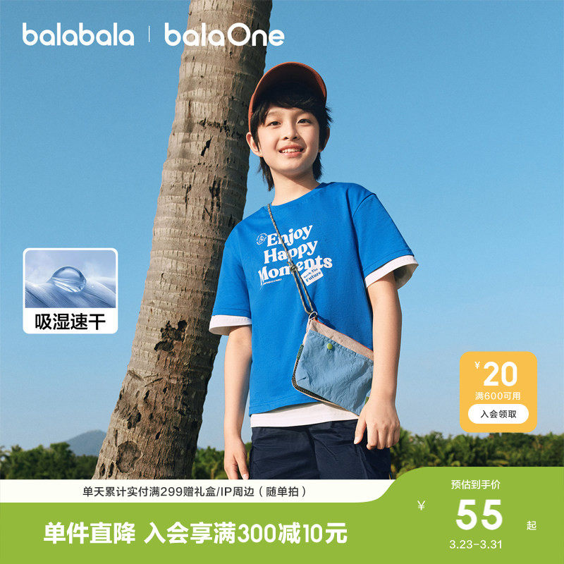 巴拉巴拉儿童短袖t恤男女童2026夏季新款大童装宝宝吸湿速干上衣