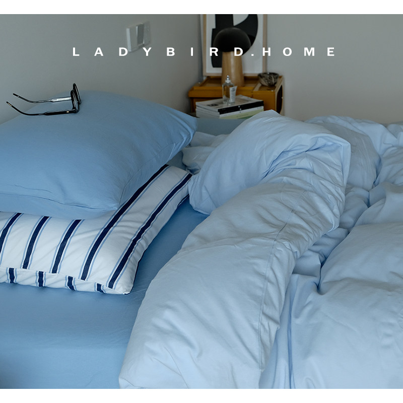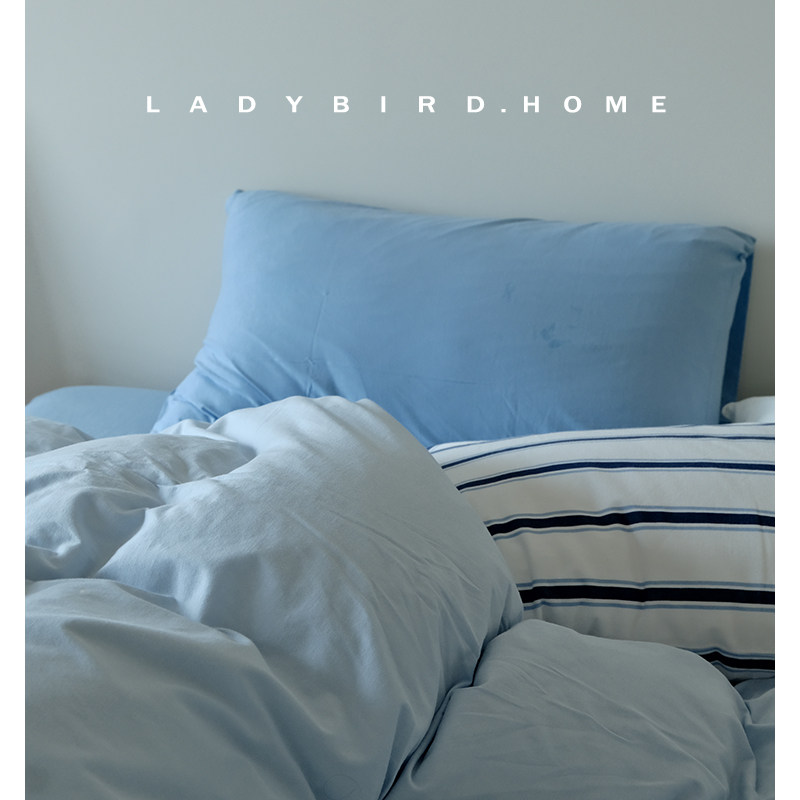 西西里海 蓝色系亲肤床单四件套纯棉针织棉冷调男生纯棉北欧床笠