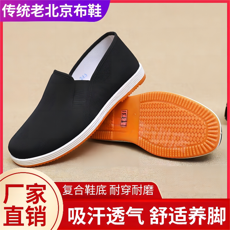 新品男鞋一脚蹬防滑超耐磨牛筋底休闲透气轻便开车工作老北京布鞋
