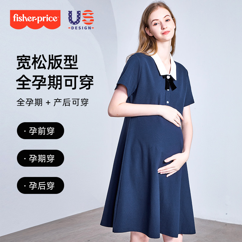 美国费雪孕妇连衣裙夏款2026新款Polo衬衫上衣小个子孕妇装夏装女