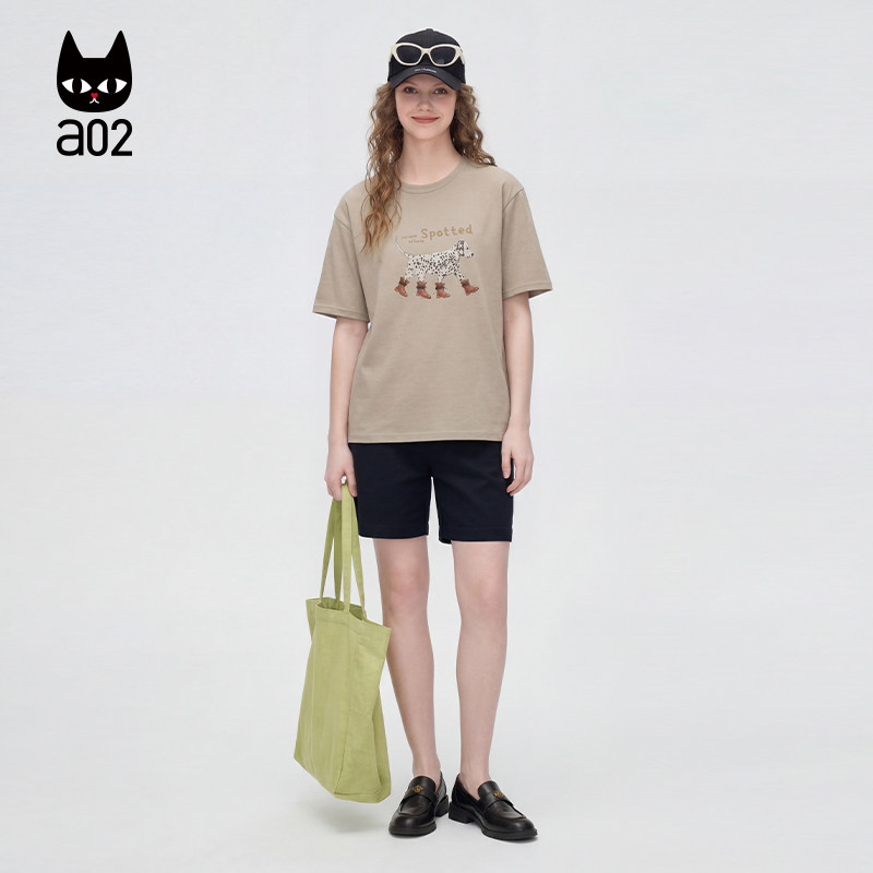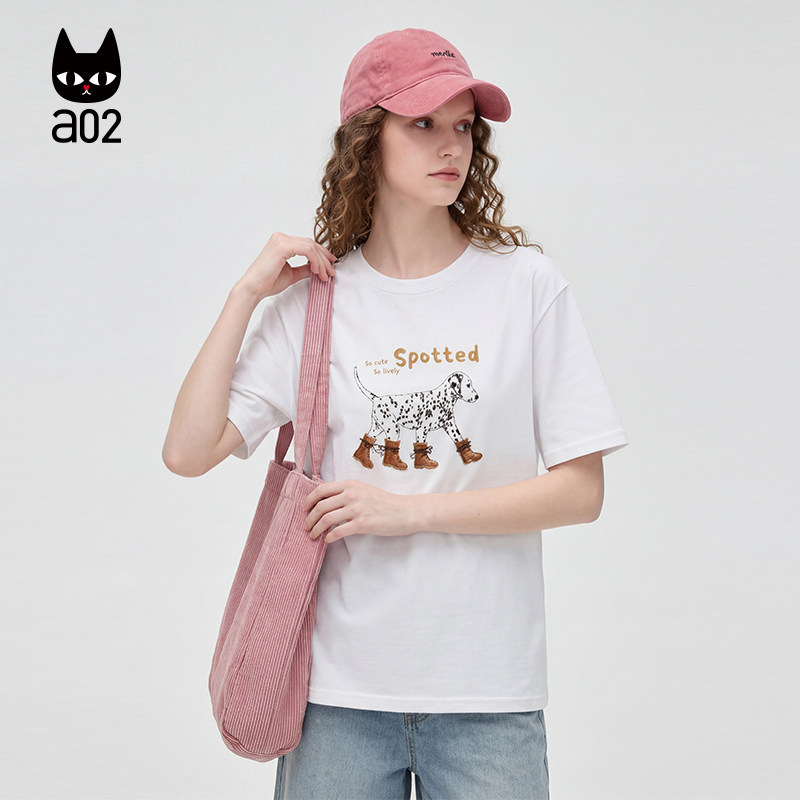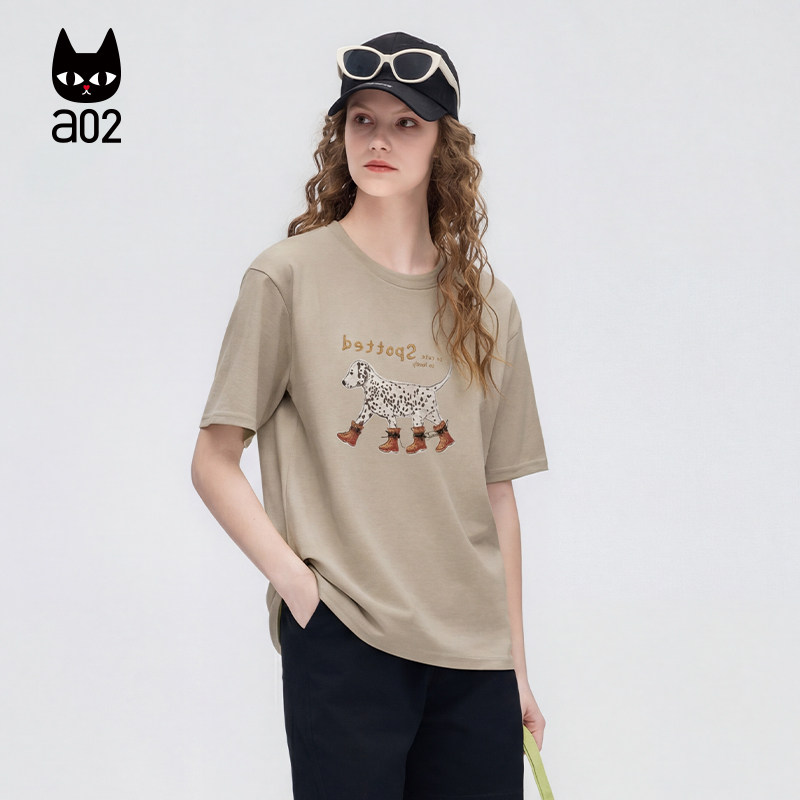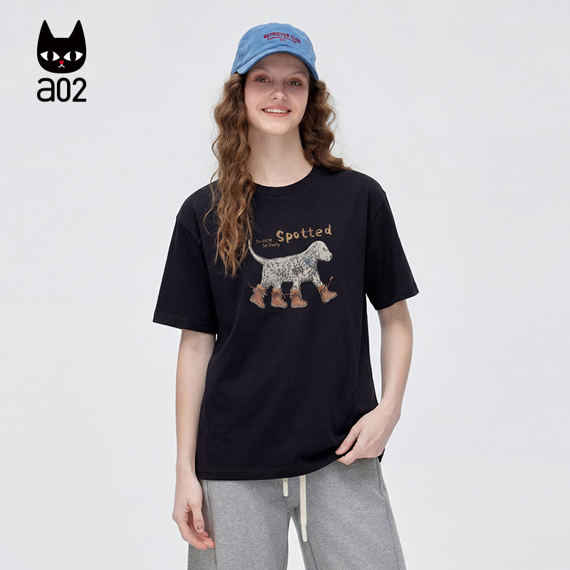 a02宽松狗狗印花圆领短袖T恤女款2026新款夏季上衣半袖薄款透气