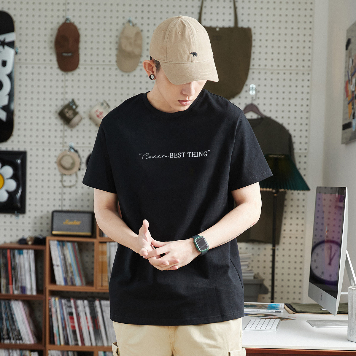 唐狮夏新款男短袖T恤简约宽松圆领潮流青少年白色内搭打底衫