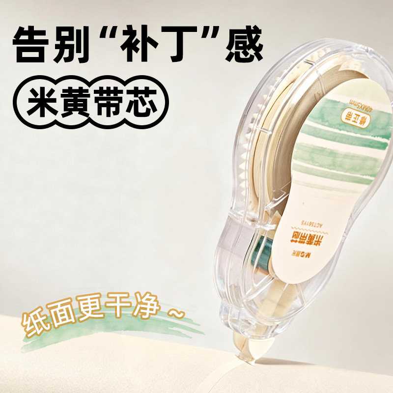 【隐形修正】晨光米黄护眼色修正带隐形修正带小学生专用修改带初中生专用带芯涂改带大容量静音原纸色改错带